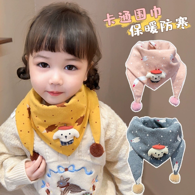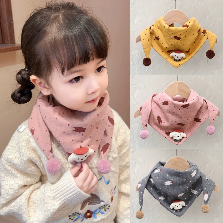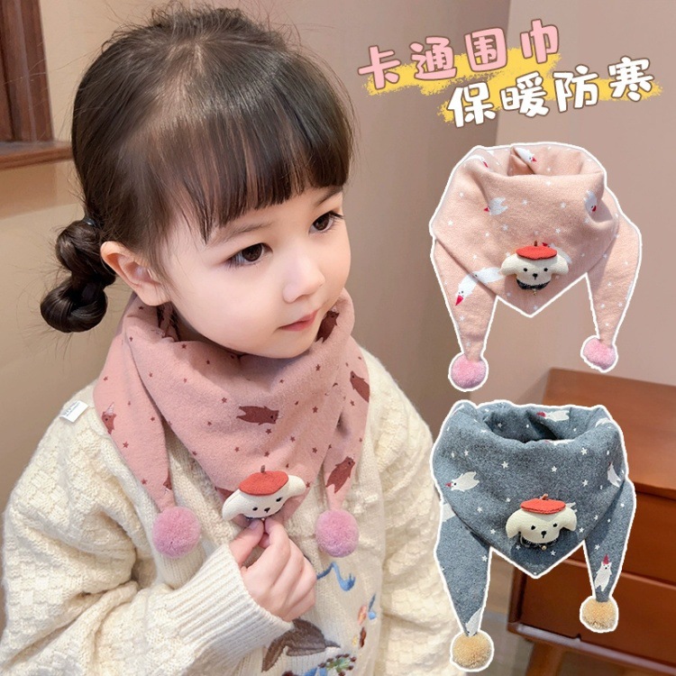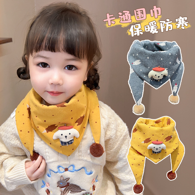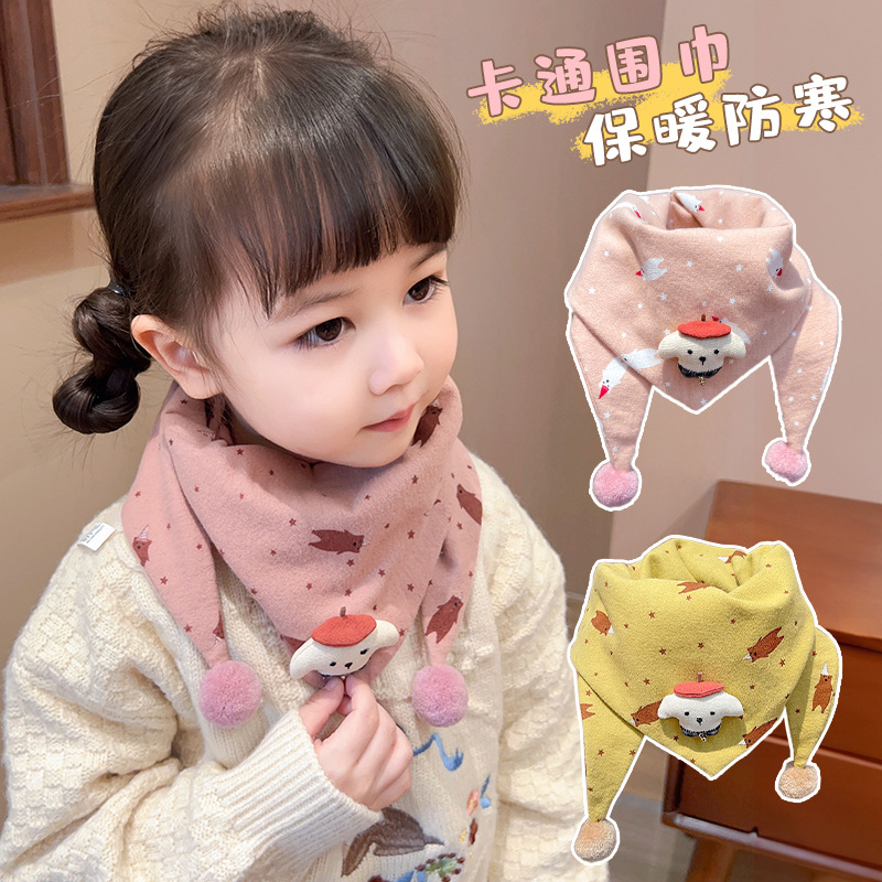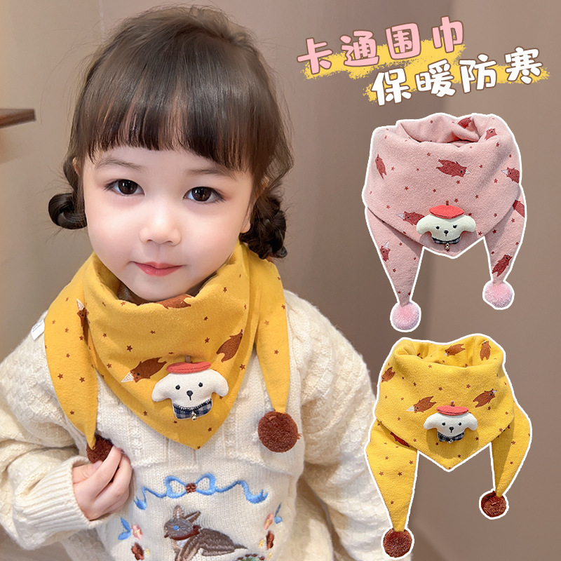 아기의 가을과 겨울 피부 친화적 인 만화 삼각형 소녀 방풍 따뜻한 목 어린이 귀여운 목 세트 어린이 스카프스토어 가기