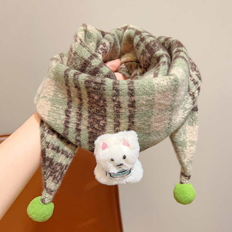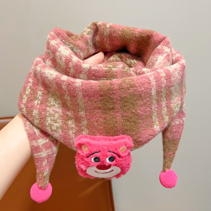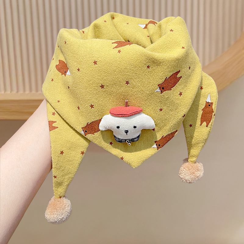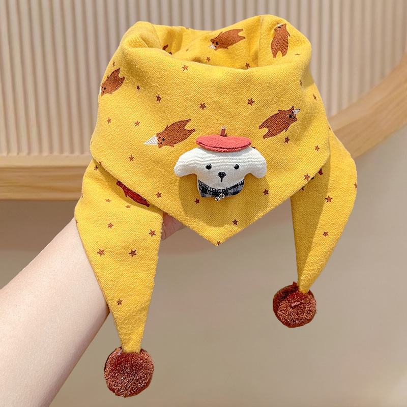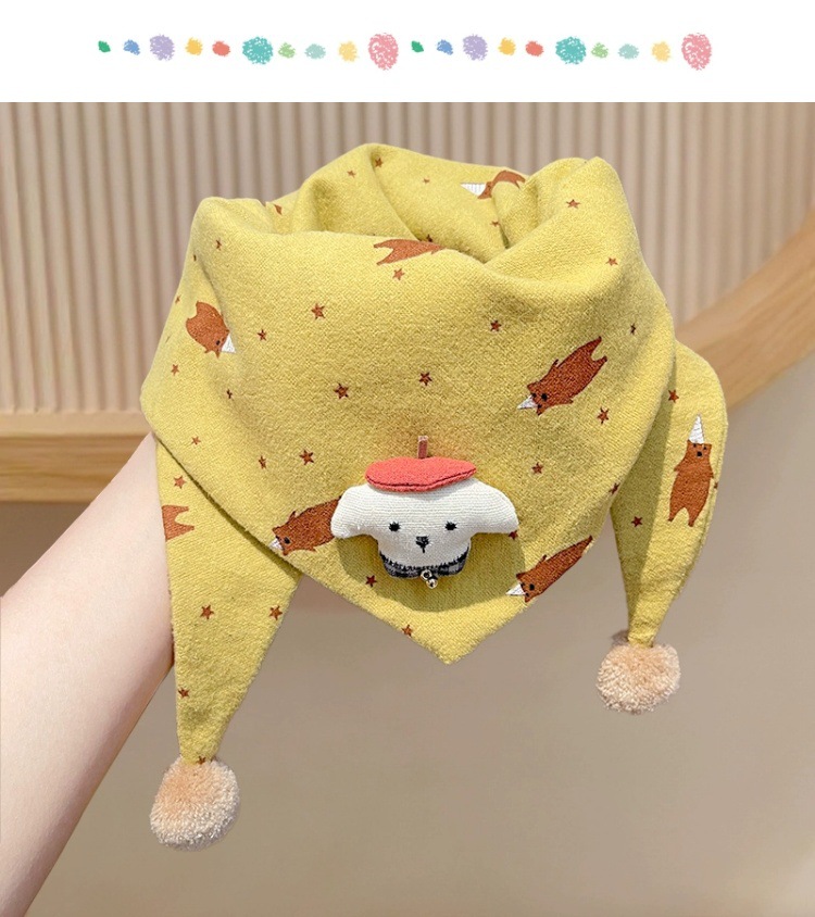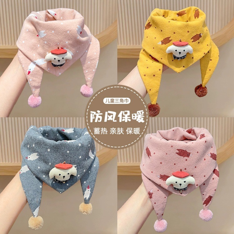 아기의 가을과 겨울 피부 친화적 인 만화 삼각형 소녀 방풍 따뜻한 목 어린이 귀여운 목 세트 어린이 스카프스토어 가기