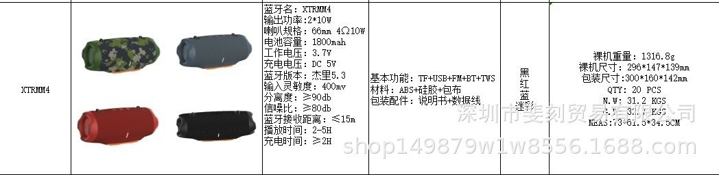 대외 무역 새로운 XTRMM4 스트랩 전쟁 드럼 4 블루투스 스피커 휴대용 야외 서브 우퍼 20W 고성능 오디오