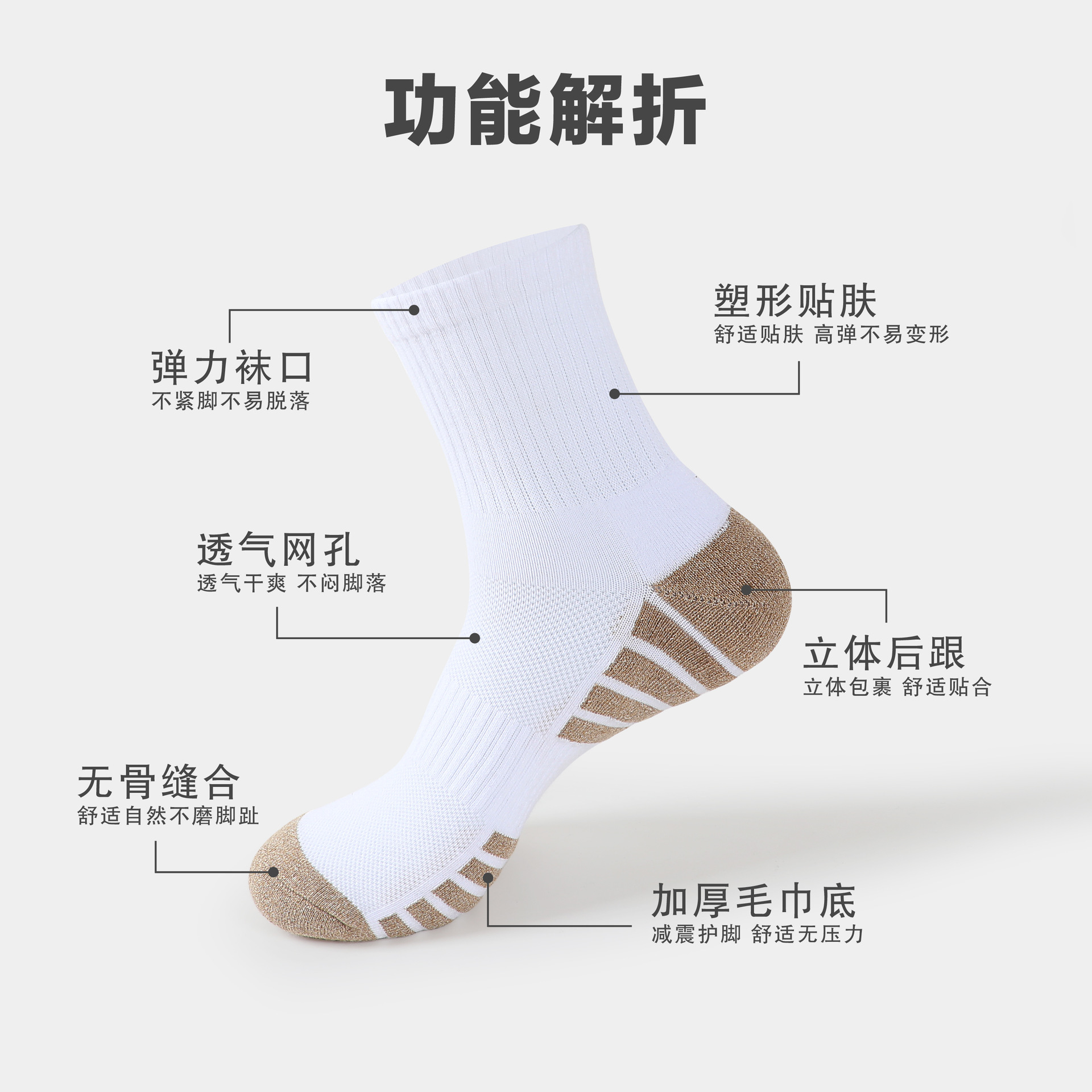 두꺼운 수건 바닥 달리기 양말 미끄럼 방지 땀 흡수성 통기성 스포츠 양말 등산 양말 국경 간 공장 직접 공급