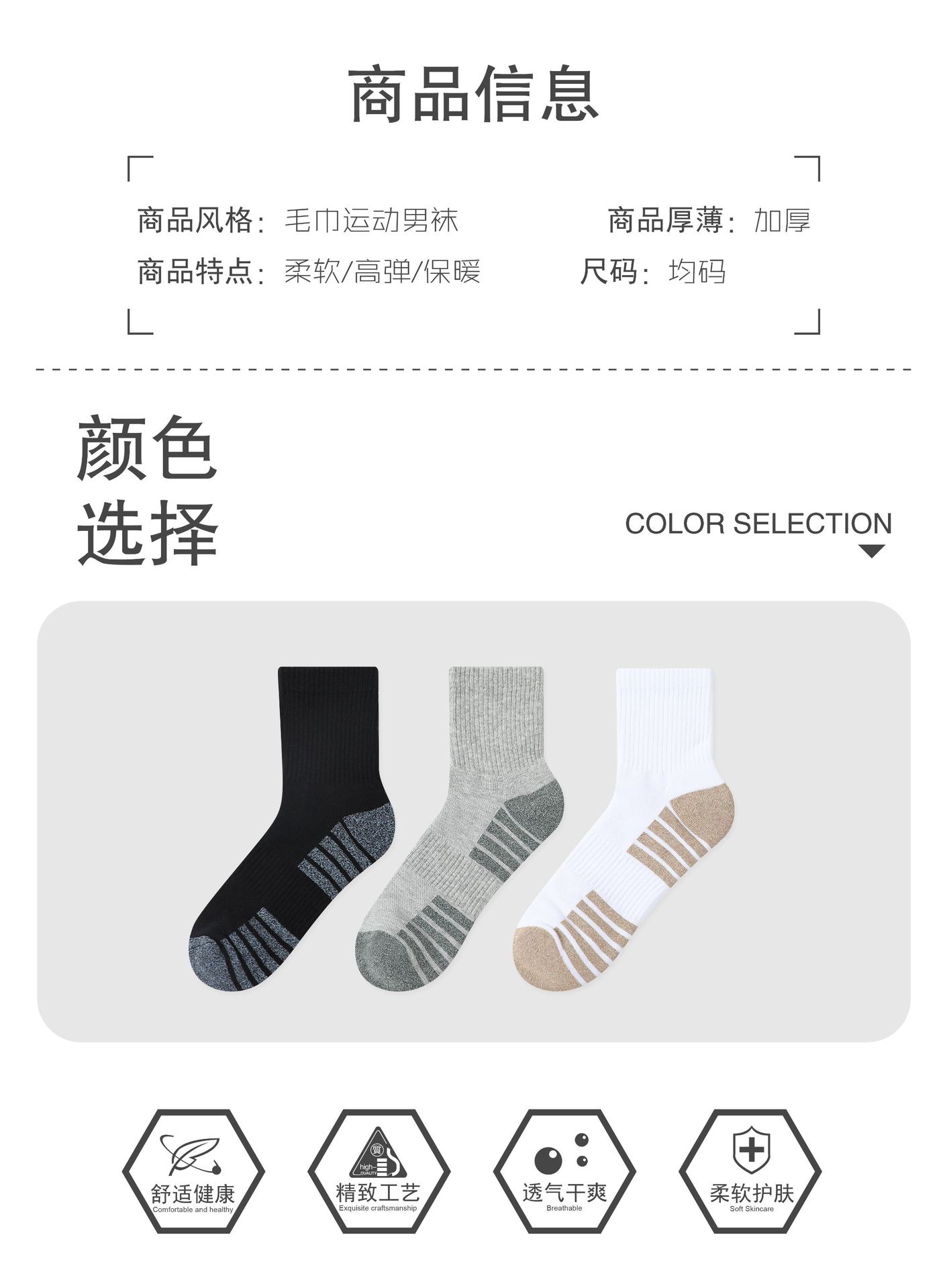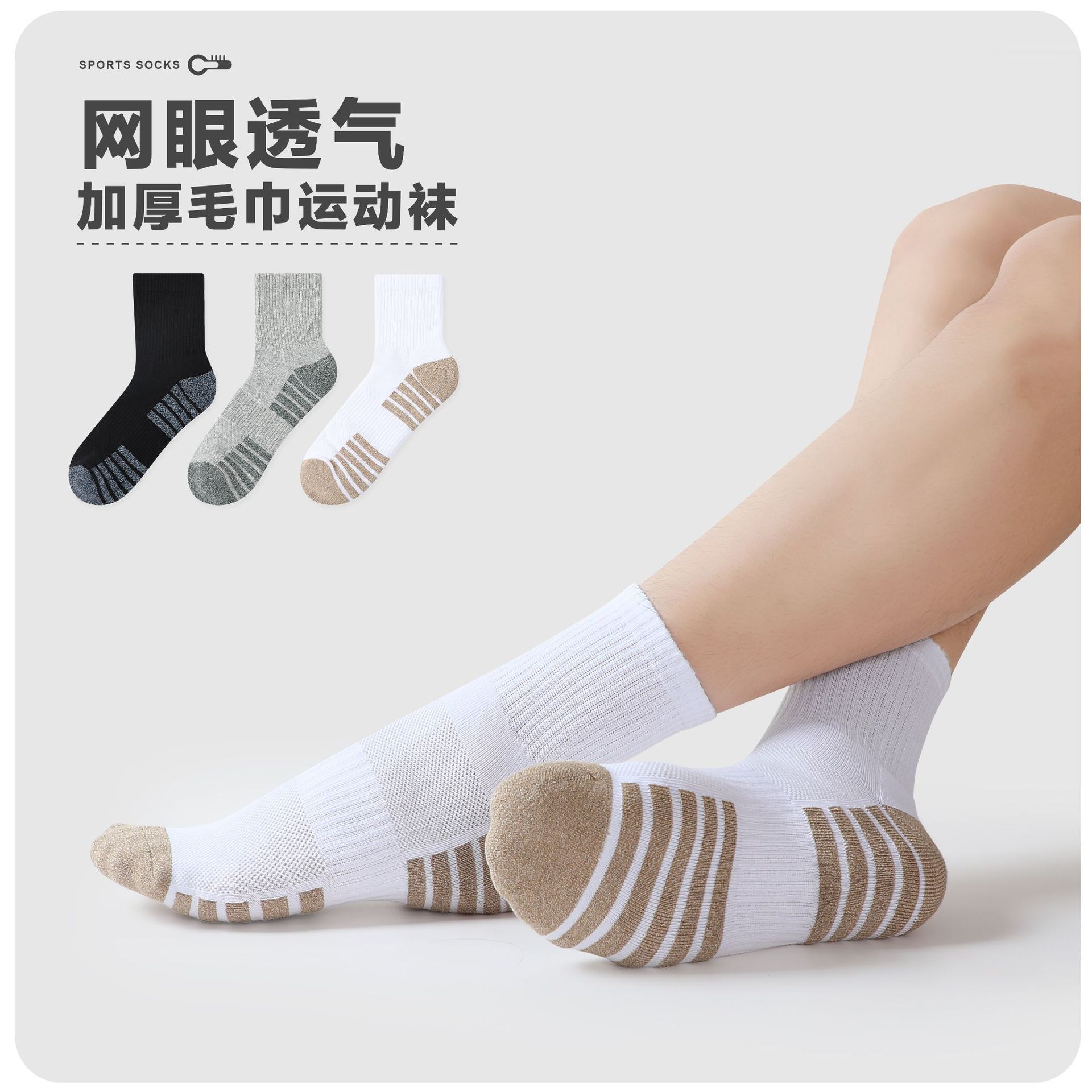 두꺼운 수건 바닥 달리기 양말 미끄럼 방지 땀 흡수성 통기성 스포츠 양말 등산 양말 국경 간 공장 직접 공급스토어 가기