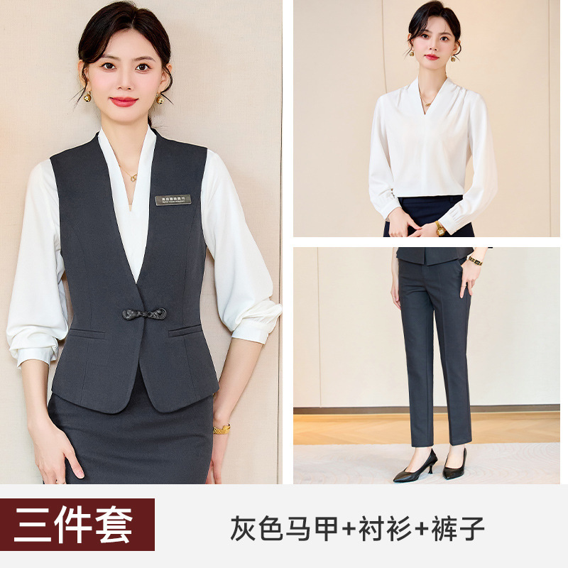 服务员马甲工作服女秋季酒店前台工装高端饭店KTV美容院职业套装