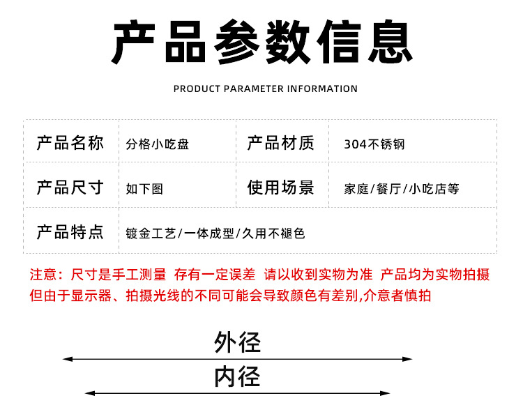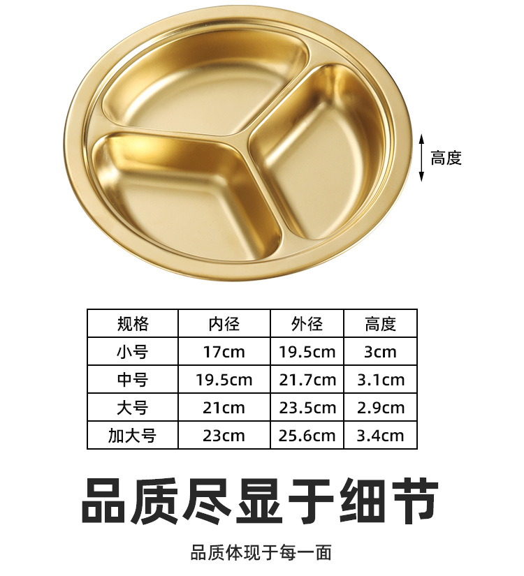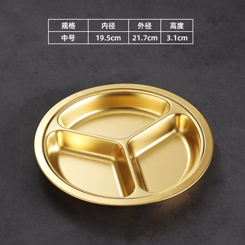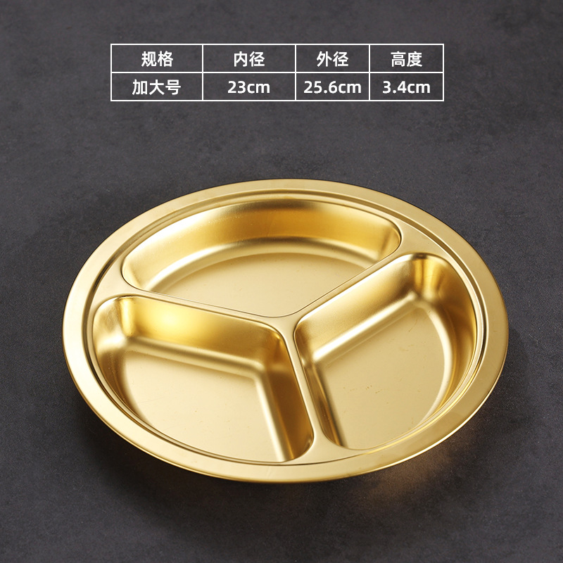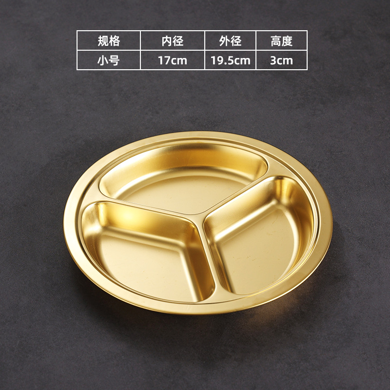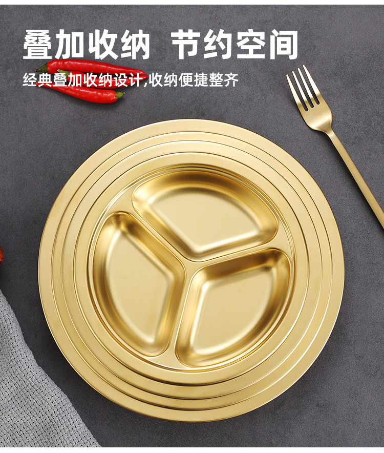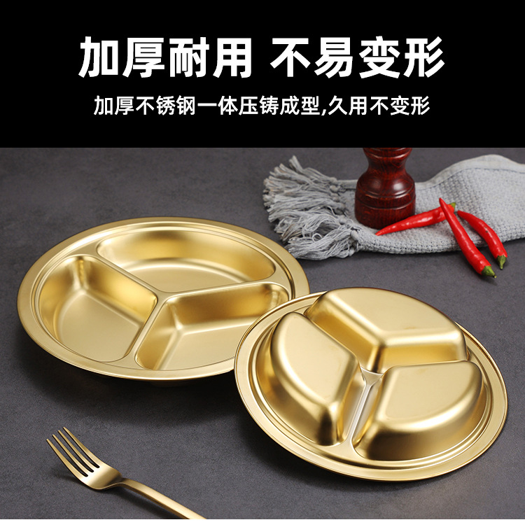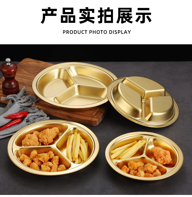 골든 304 스테인레스 스틸 라운드 어린이 디너 플레이트 유치원 베이비 런치 박스 레스토랑 직원 학생 스플릿 플레이트스토어 가기