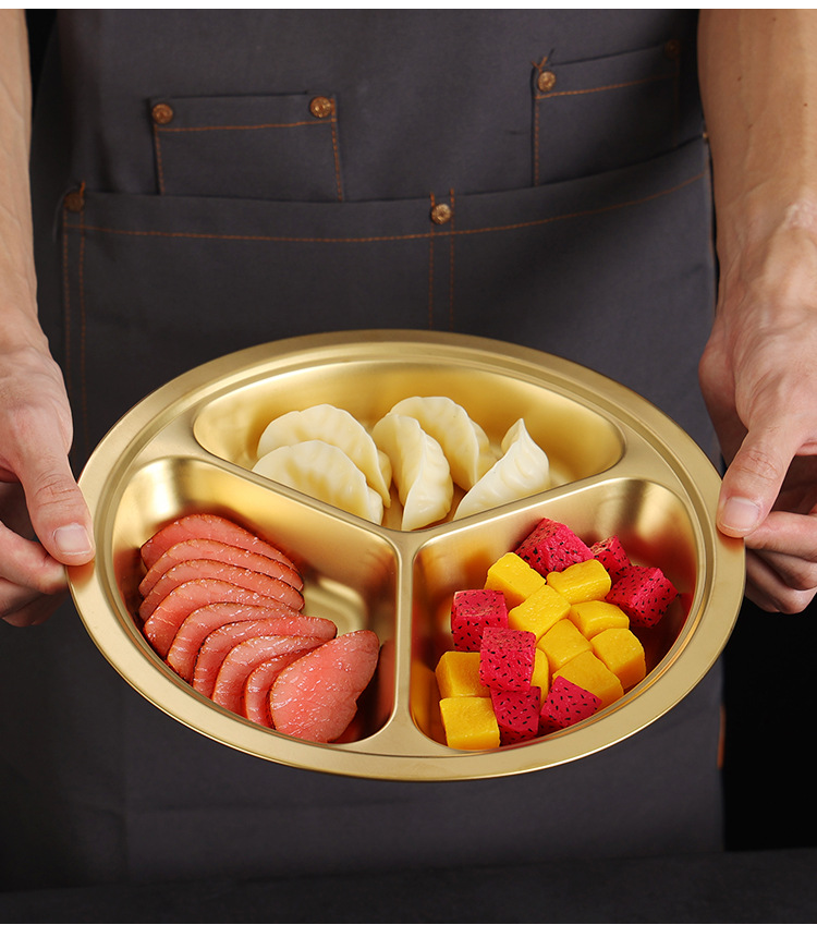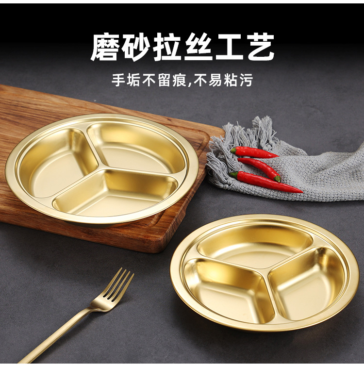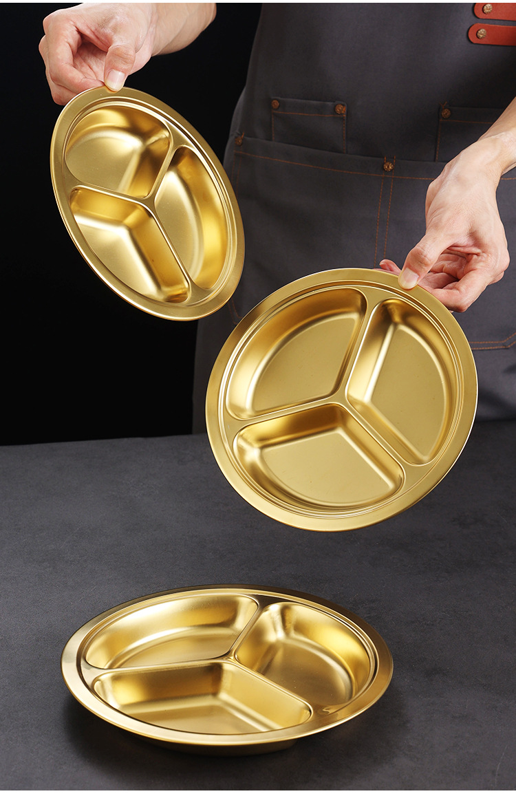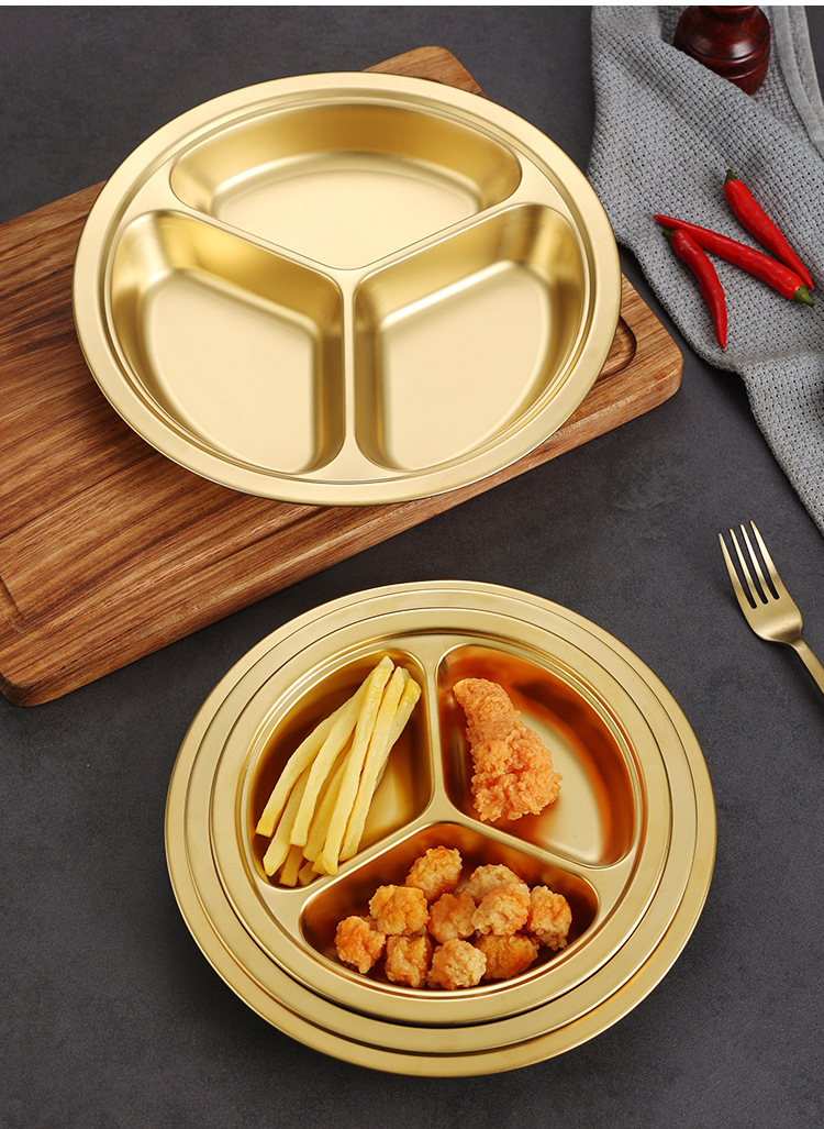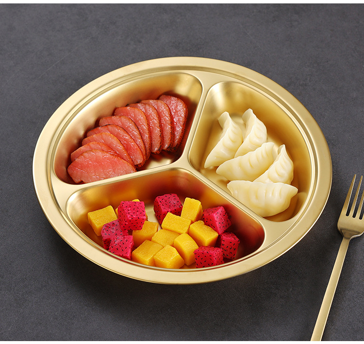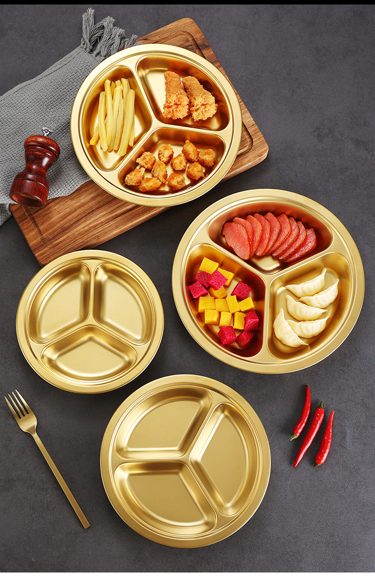 골든 304 스테인레스 스틸 라운드 어린이 디너 플레이트 유치원 베이비 런치 박스 레스토랑 직원 학생 스플릿 플레이트
