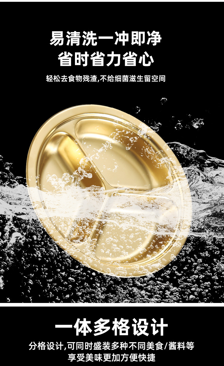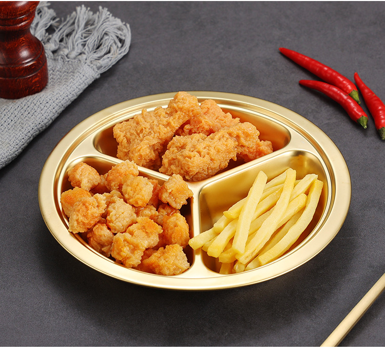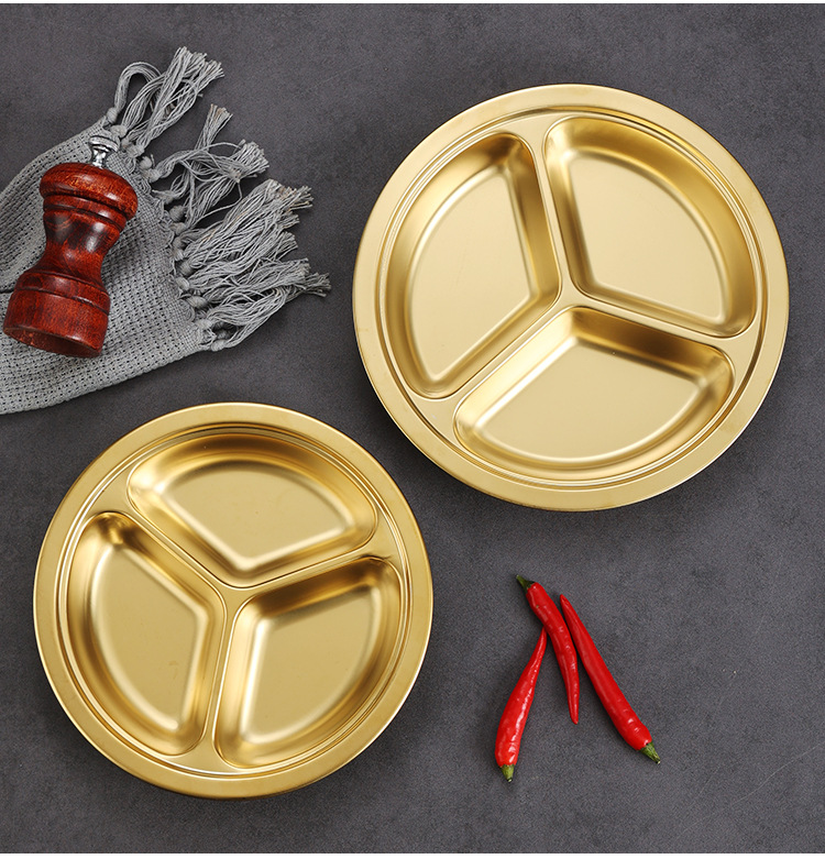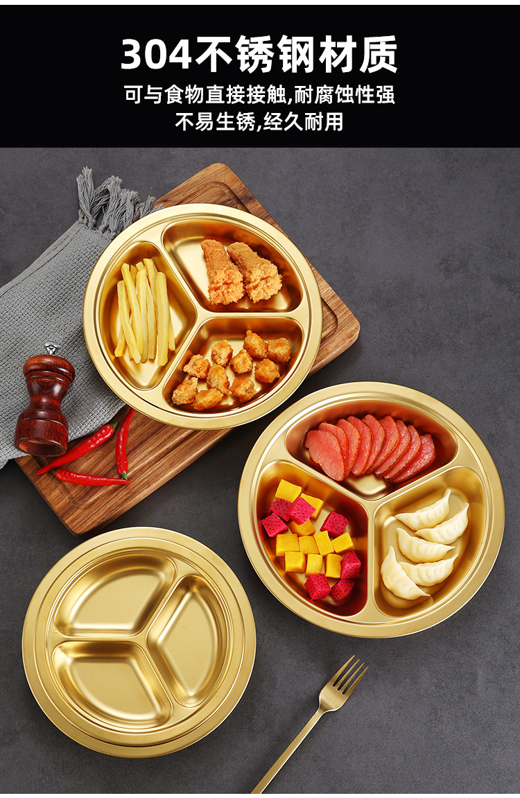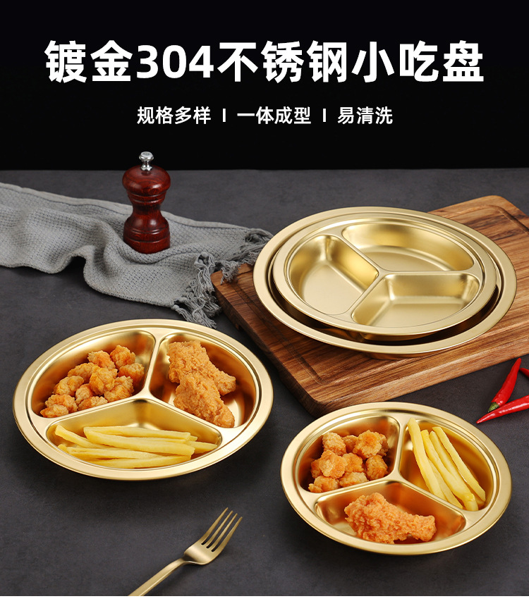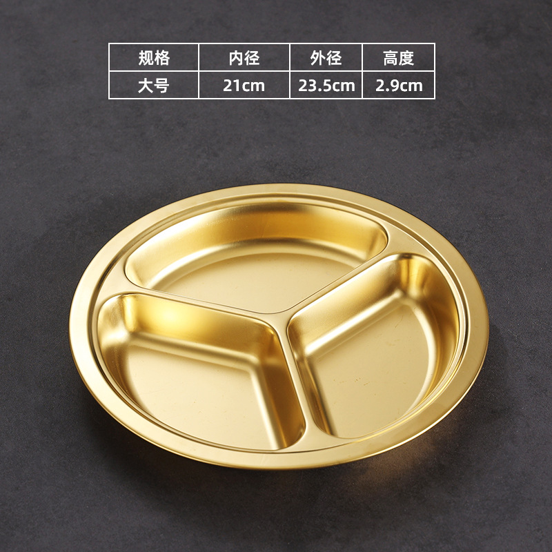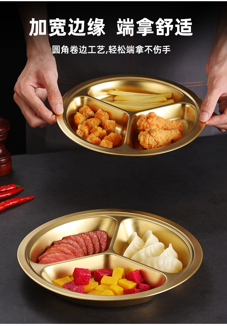 골든 304 스테인레스 스틸 라운드 어린이 디너 플레이트 유치원 베이비 런치 박스 레스토랑 직원 학생 스플릿 플레이트
