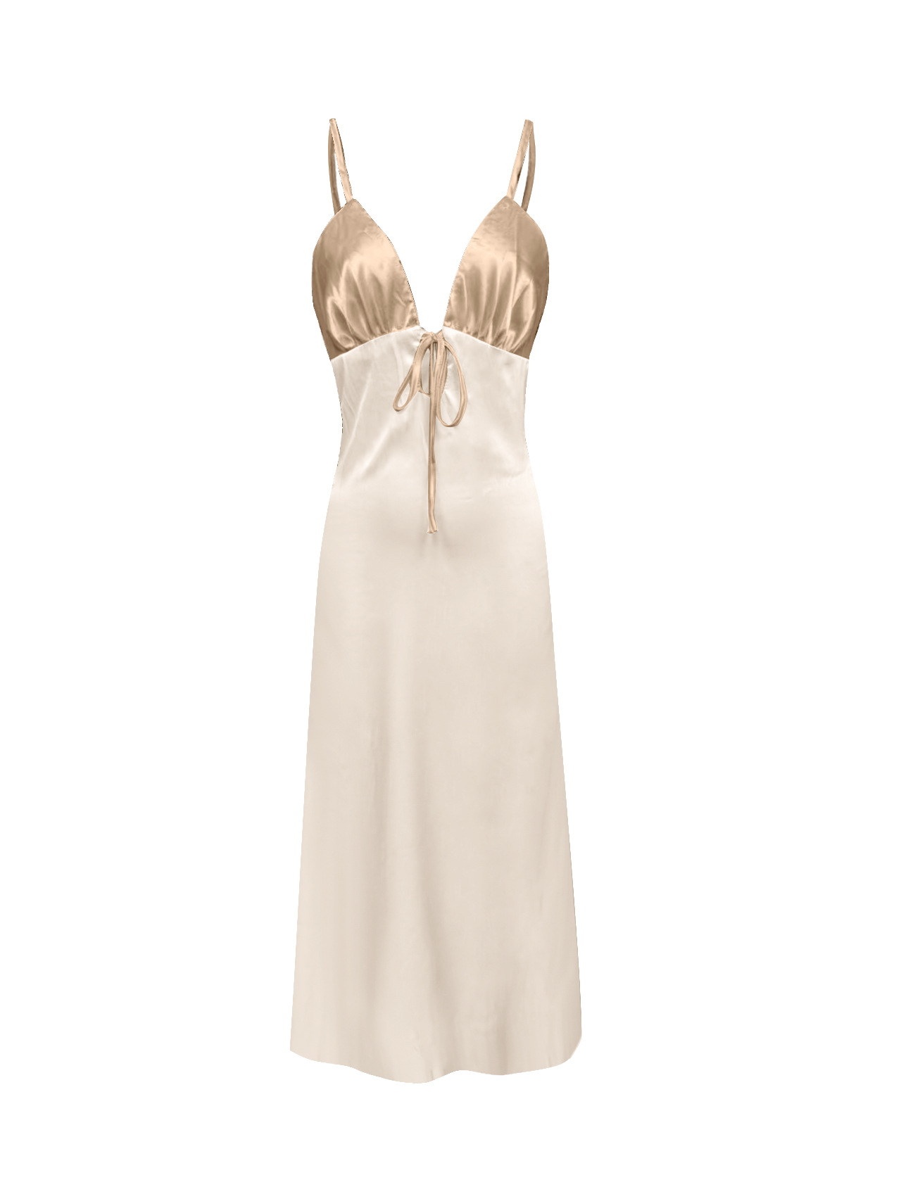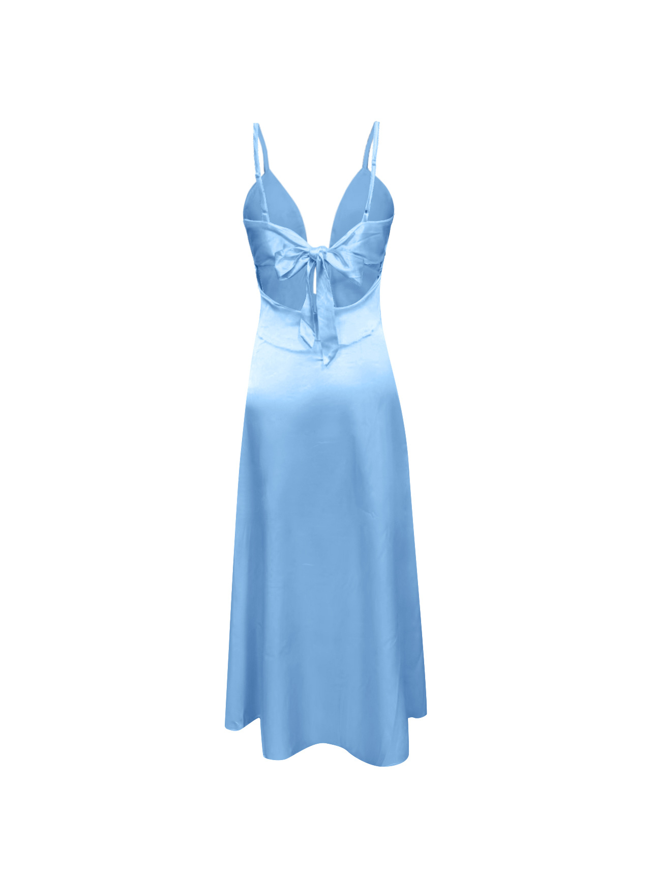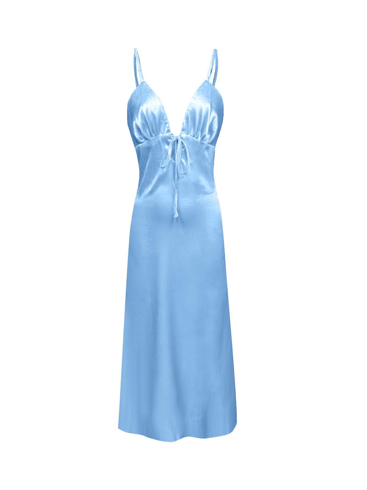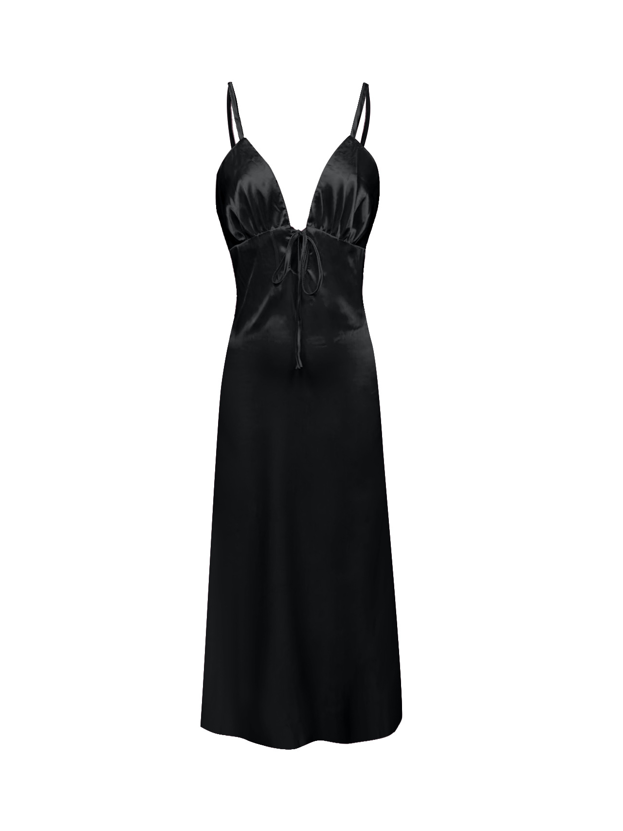 국경을 넘는 유럽과 미국 스타일의 독립 스테이션 새로운 레이스 업 새틴 패브릭 긴 V 넥 섹시한 원피스 여성스토어 가기