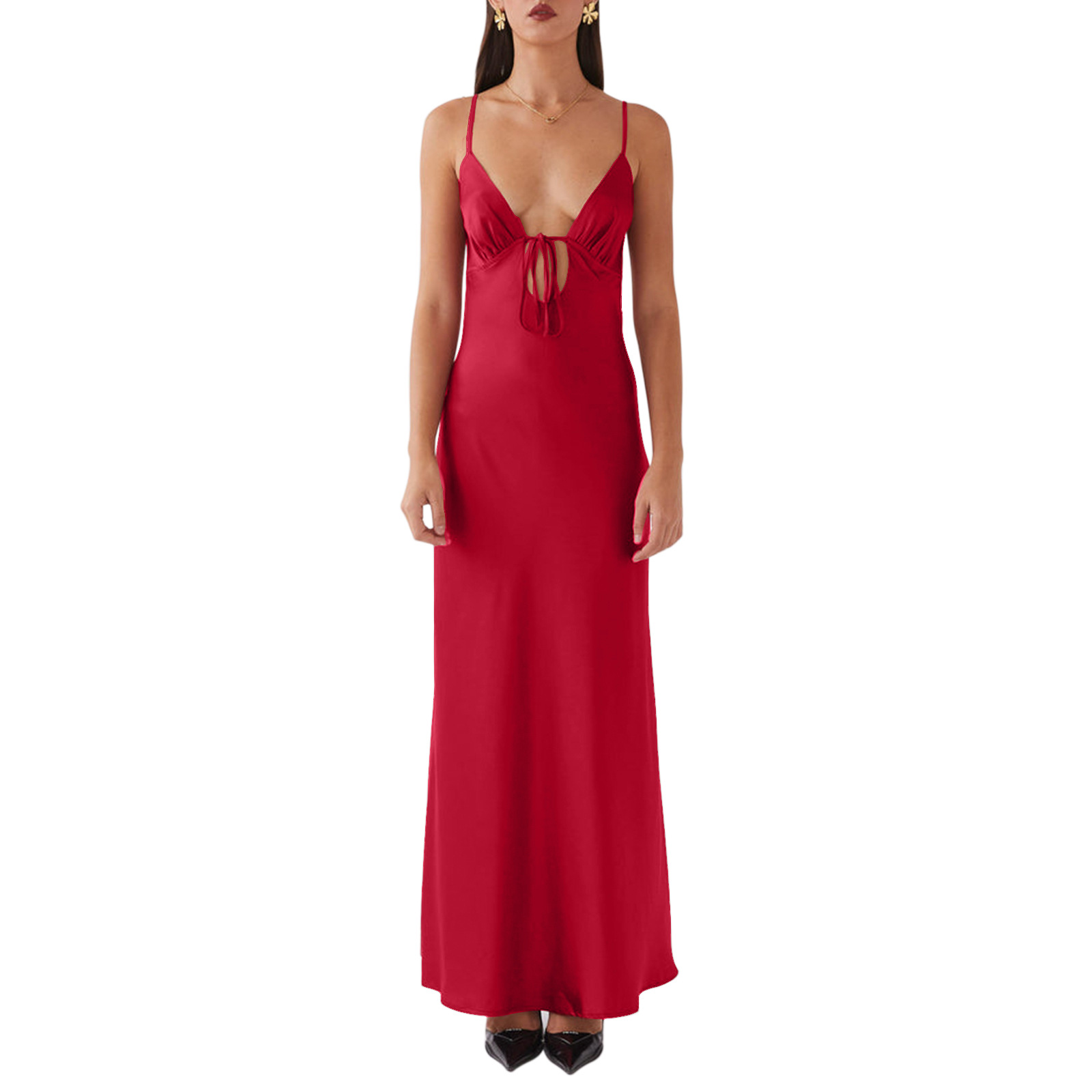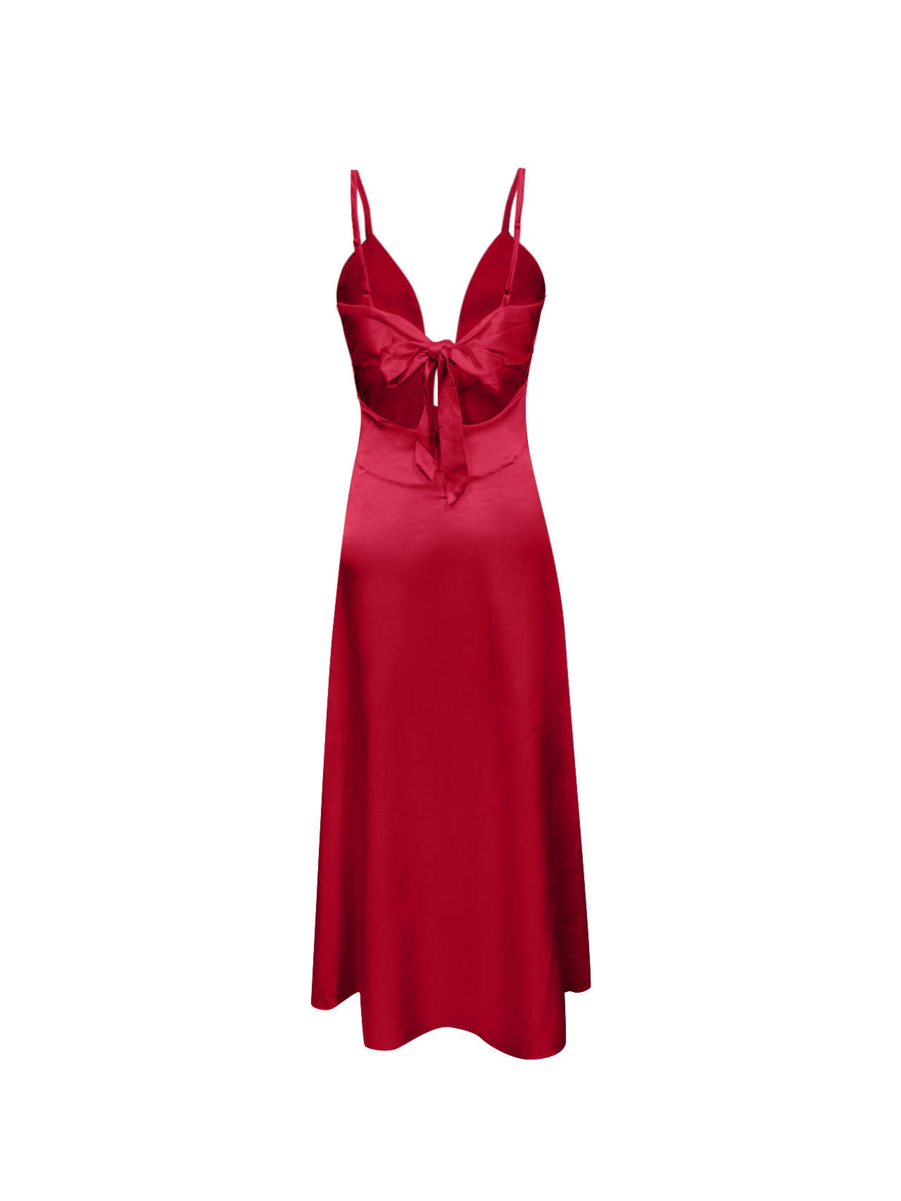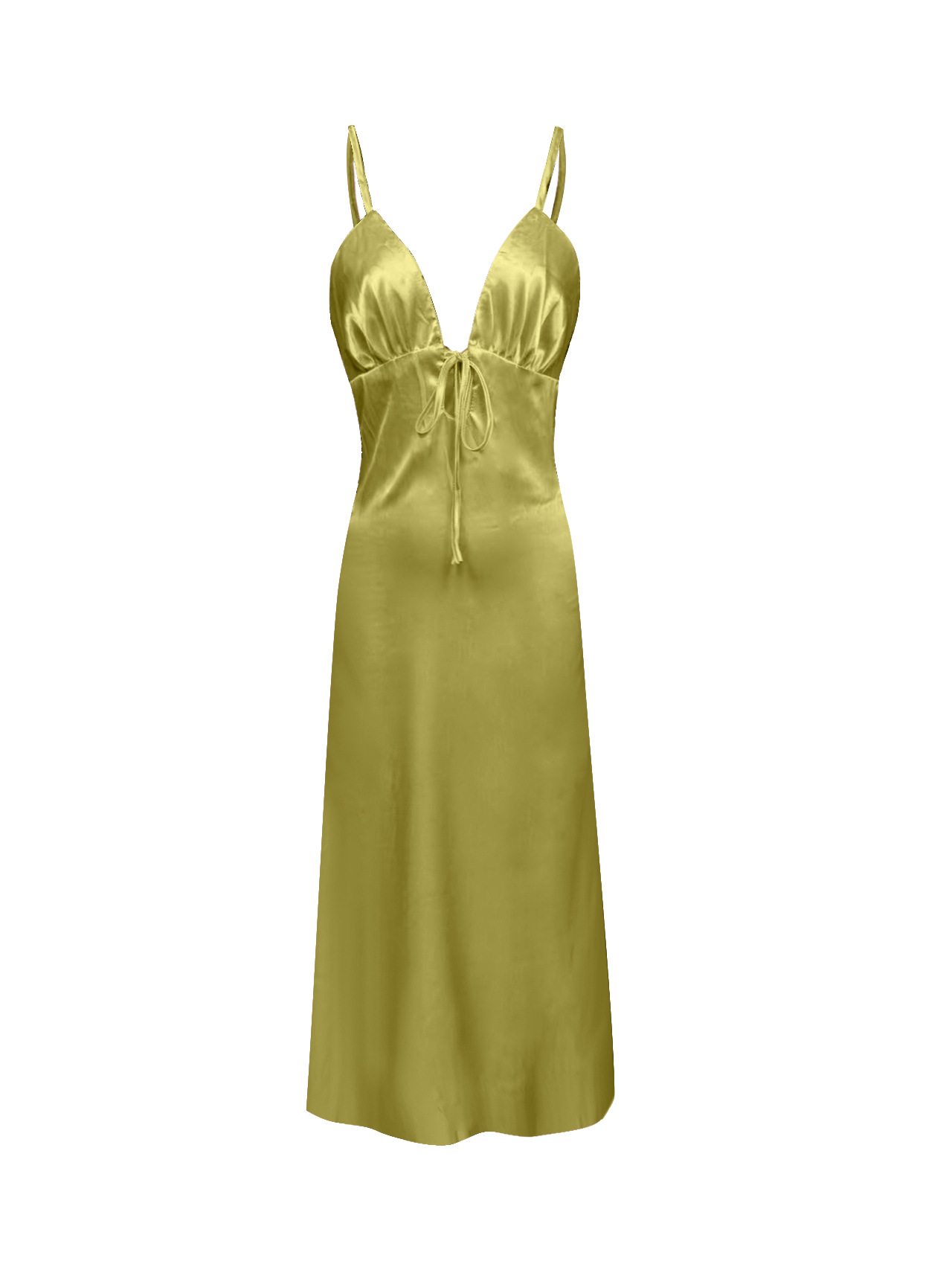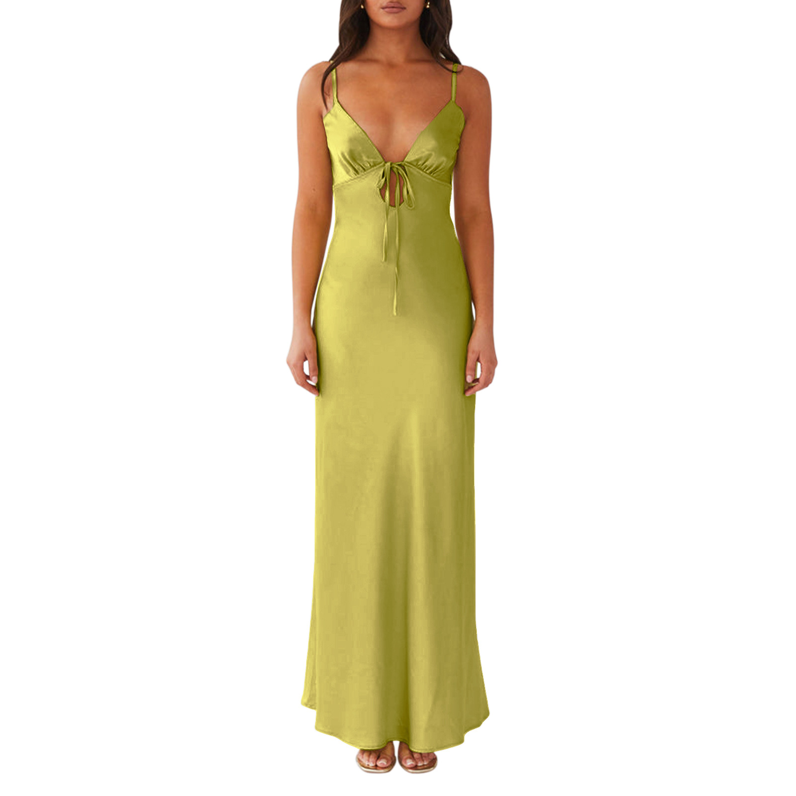국경을 넘는 유럽과 미국 스타일의 독립 스테이션 새로운 레이스 업 새틴 패브릭 긴 V 넥 섹시한 원피스 여성