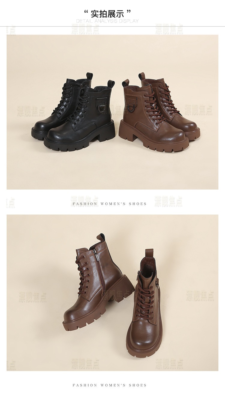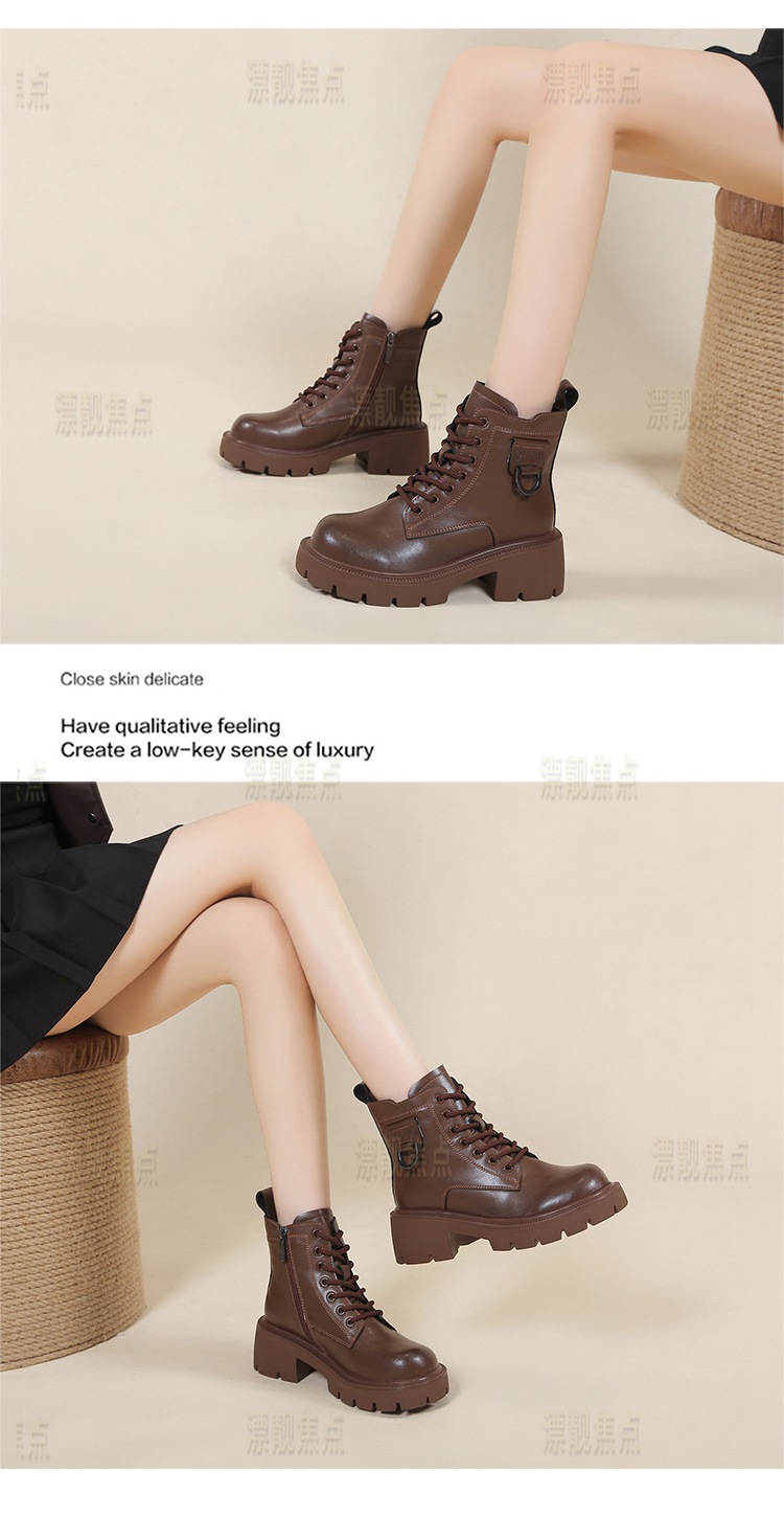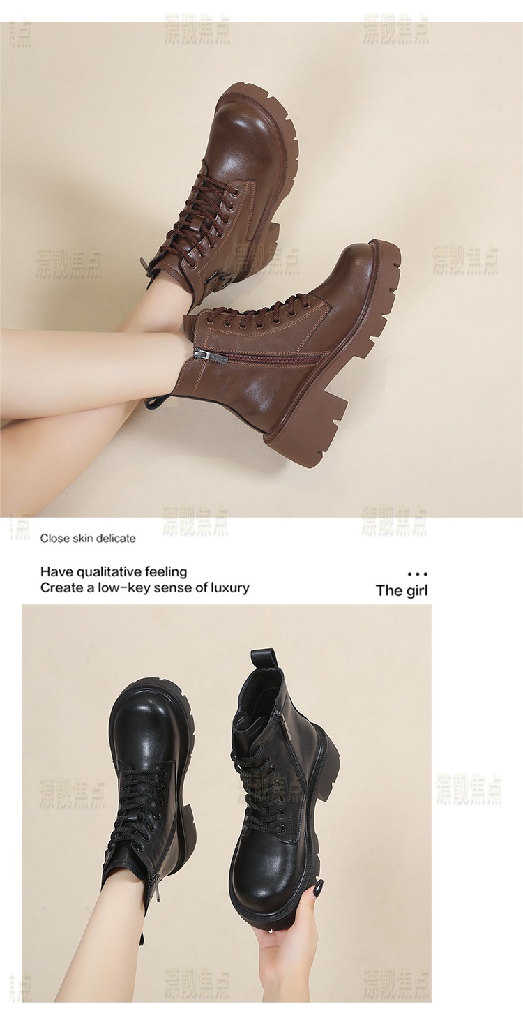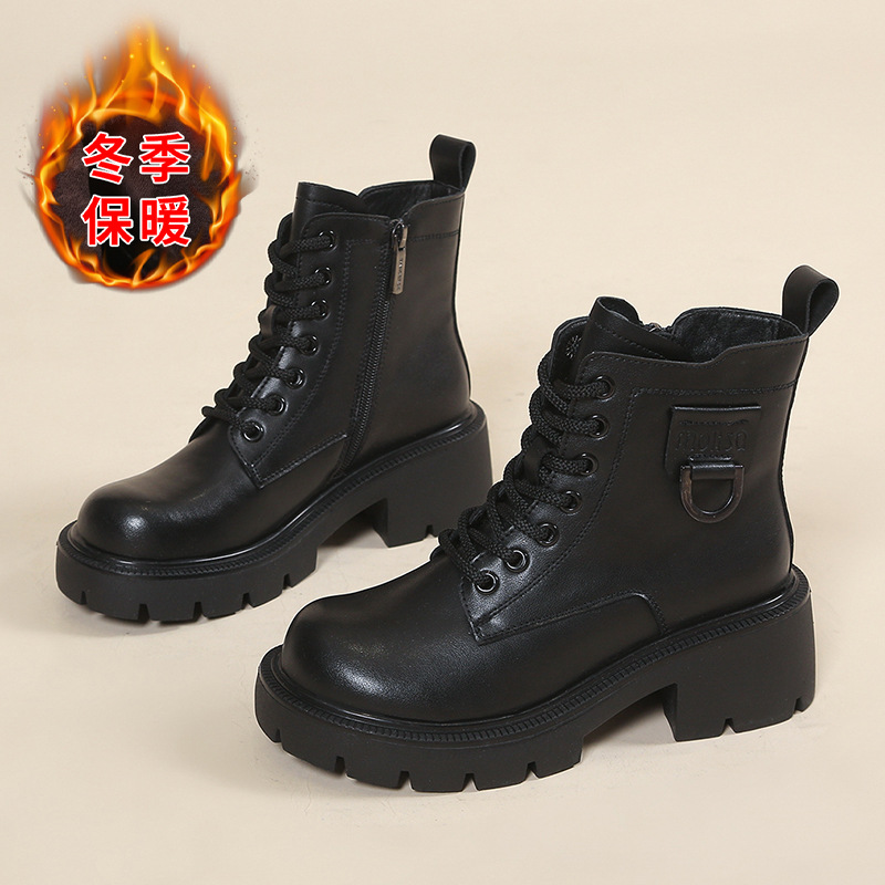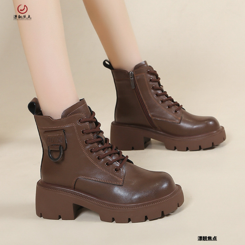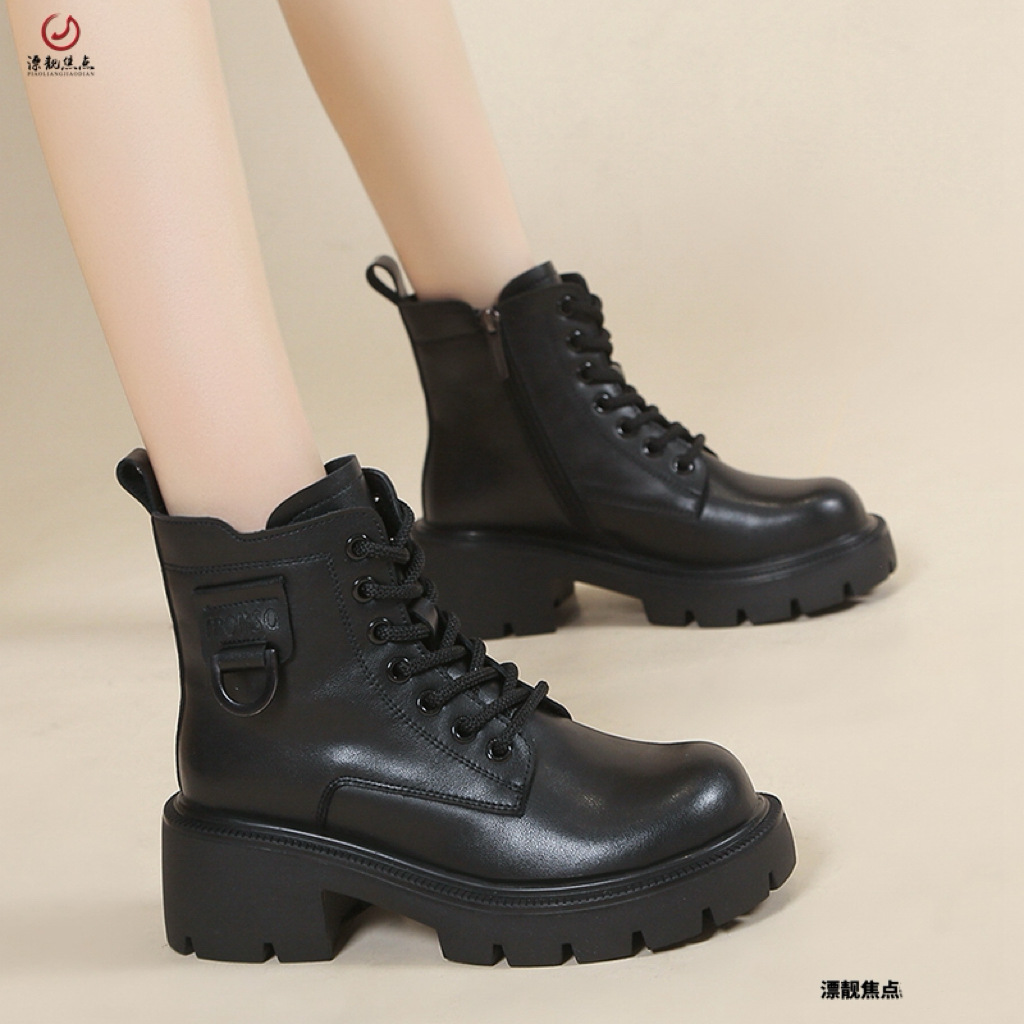 정품 가죽 마틴 부츠 여성 영국 스타일 2024 폭발 가을 및 겨울 기모 두꺼운 바닥 소프트 하단 측정 중간 튜브 부츠 여성스토어 가기