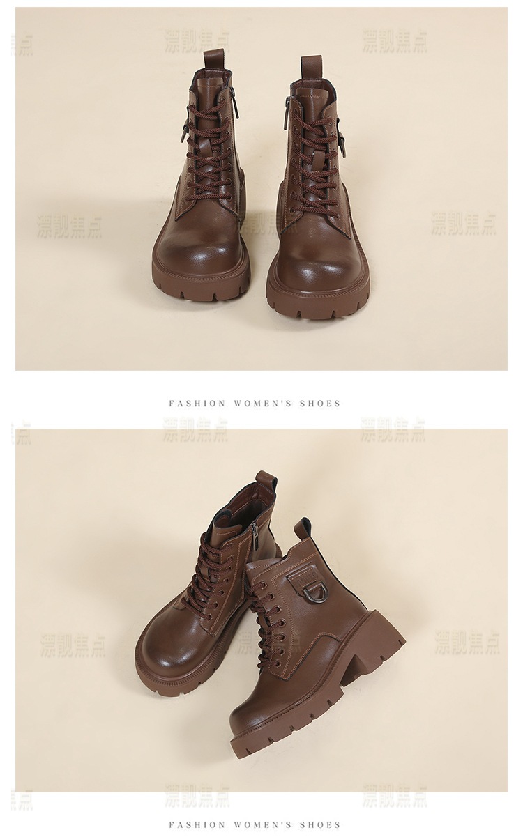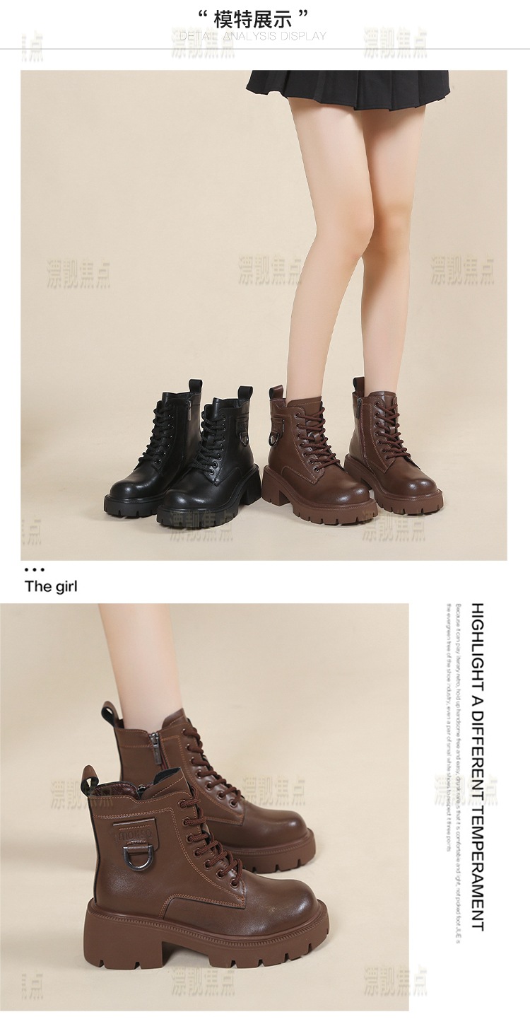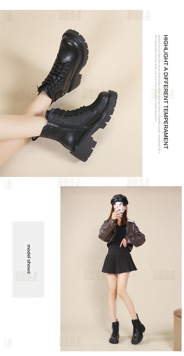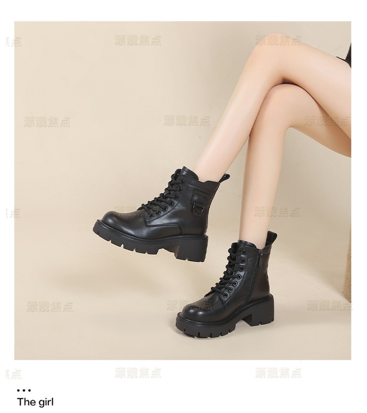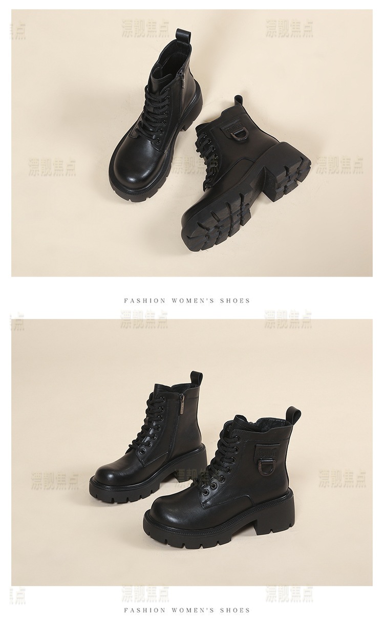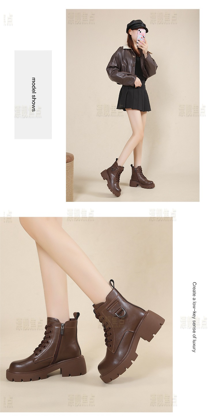 정품 가죽 마틴 부츠 여성 영국 스타일 2024 폭발 가을 및 겨울 기모 두꺼운 바닥 소프트 하단 측정 중간 튜브 부츠 여성스토어 가기