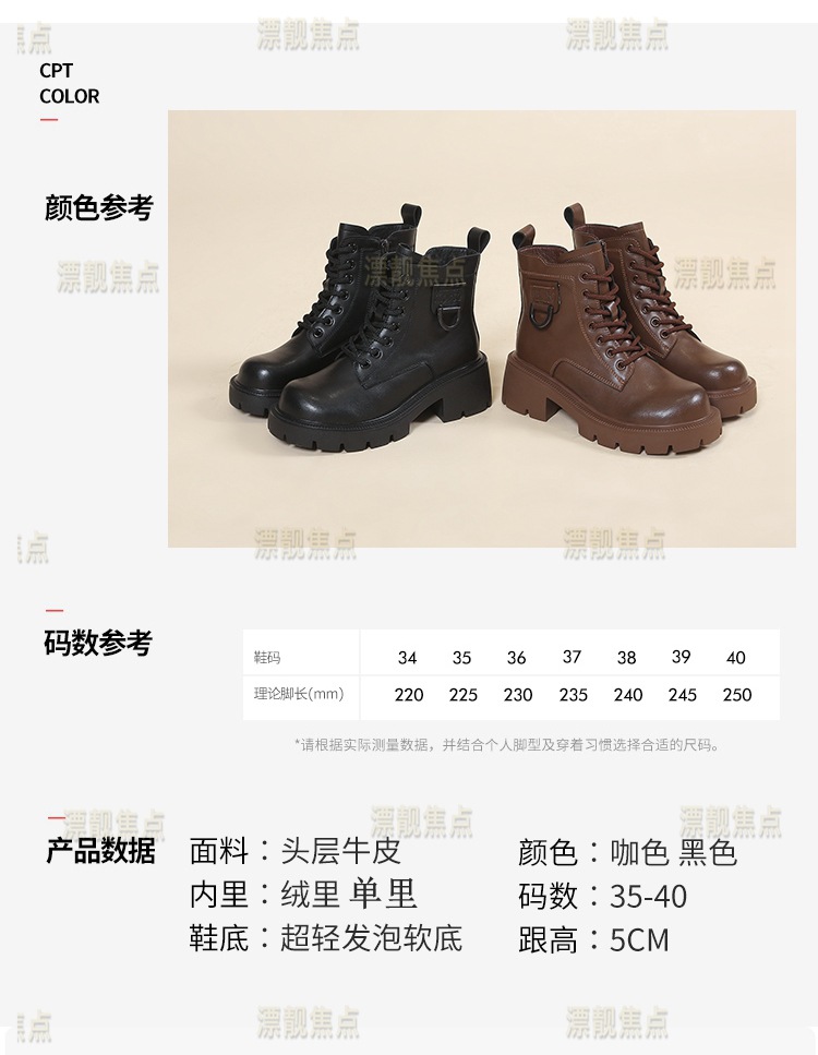 정품 가죽 마틴 부츠 여성 영국 스타일 2024 폭발 가을 및 겨울 기모 두꺼운 바닥 소프트 하단 측정 중간 튜브 부츠 여성