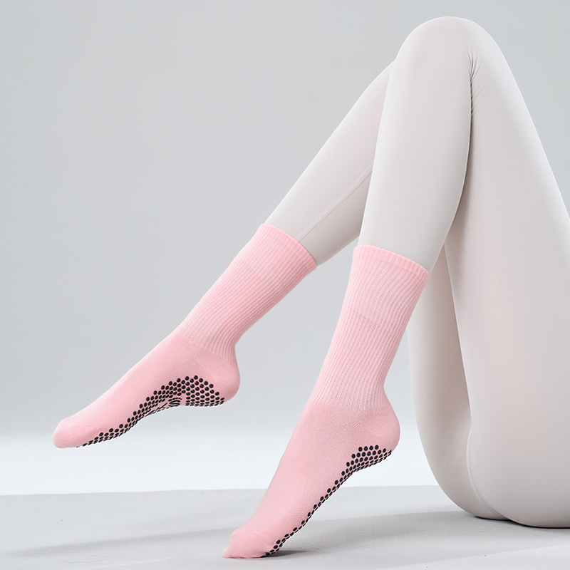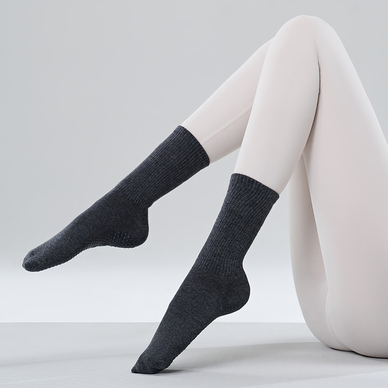 겨울용 중간 길이 요가 양말 여성용 미끄럼 방지 필라테스 전용 양말 압박 양말 스포츠 피트니스 레드 코튼 도매스토어 가기