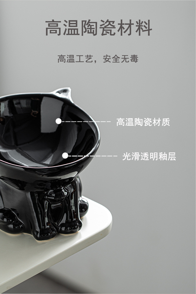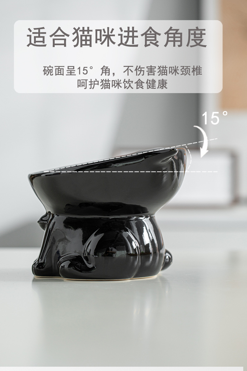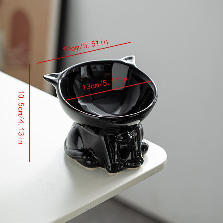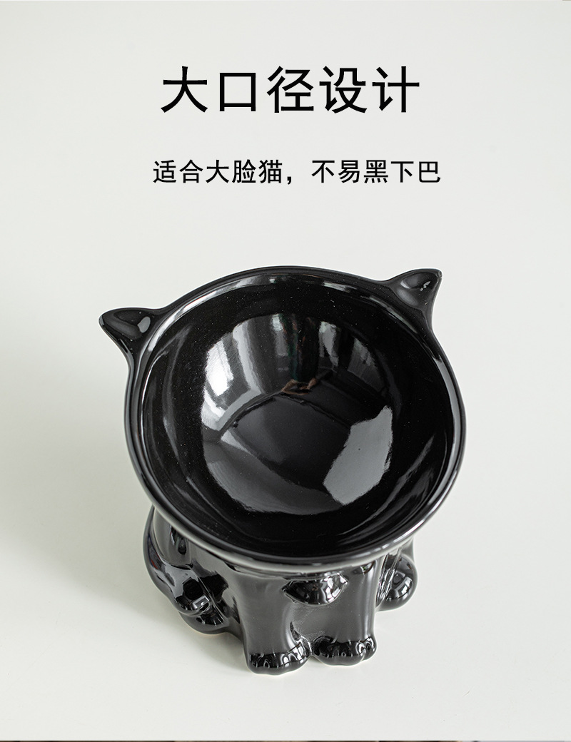 고양이 그릇 세라믹 고양이 음식 분지 검은 마시는 그릇 비스듬한 입 높은 발 애완 동물 개 식품 쌀 그릇 보호 자궁 경부 척추 방지 노크