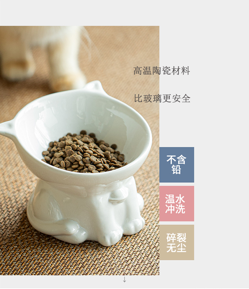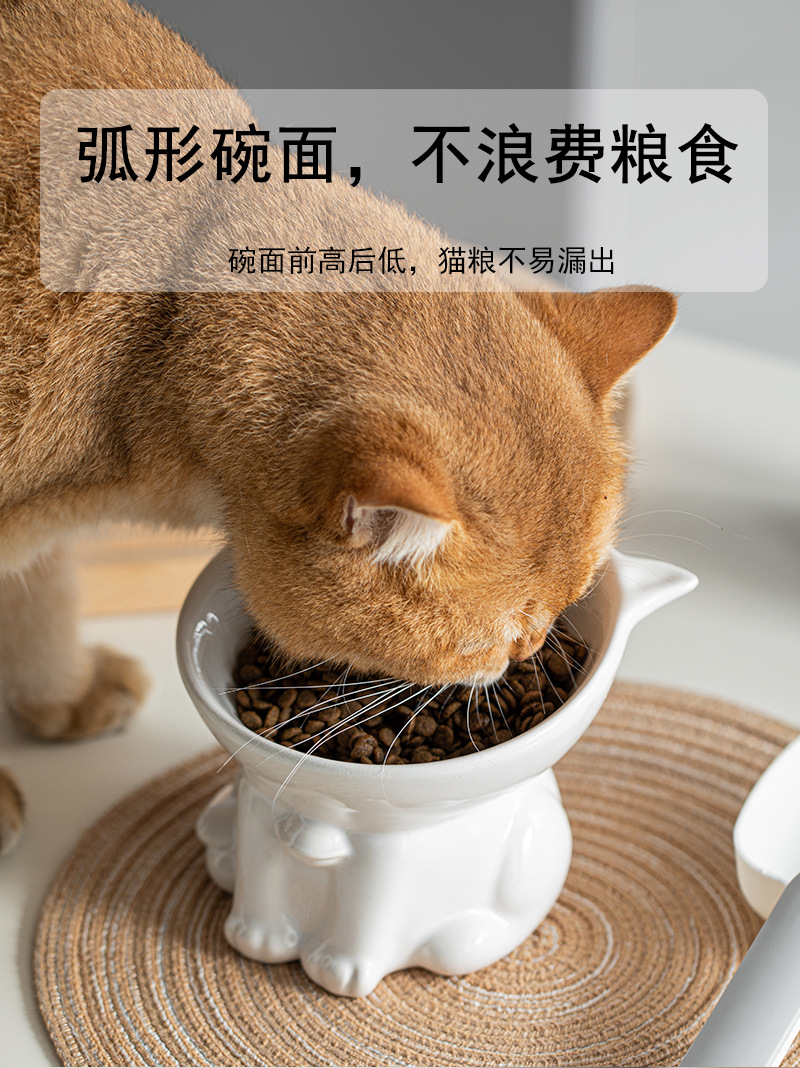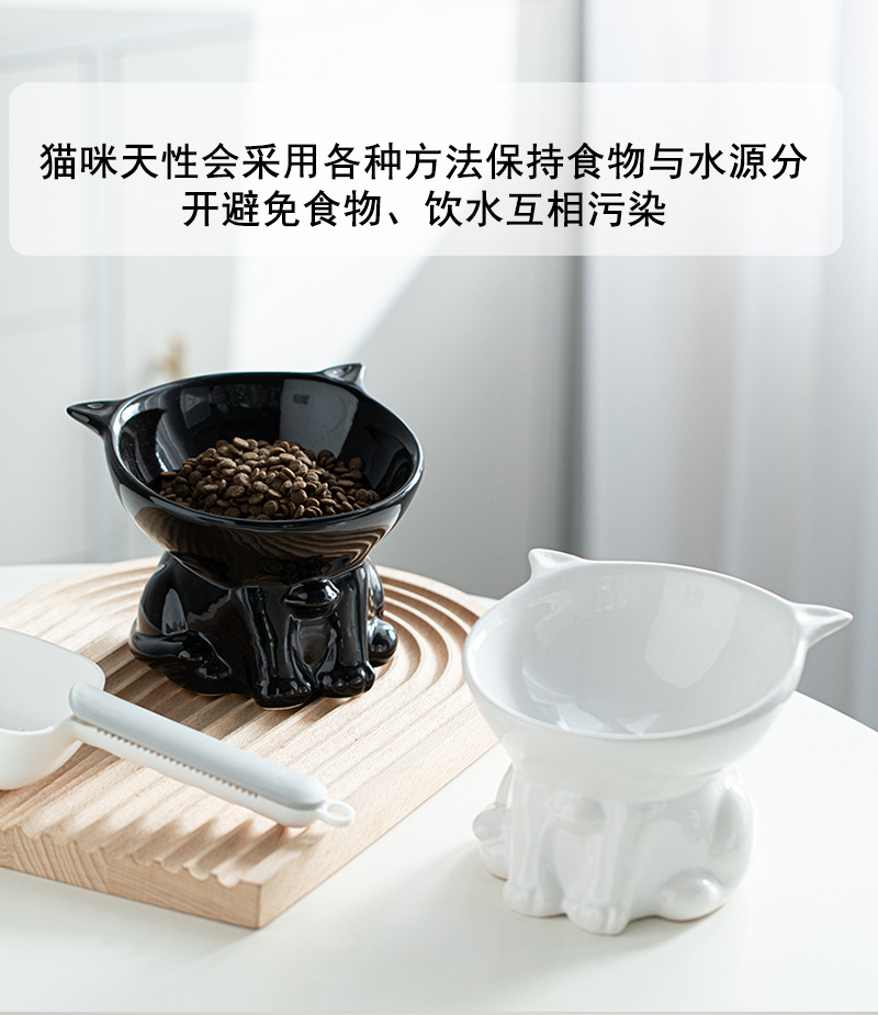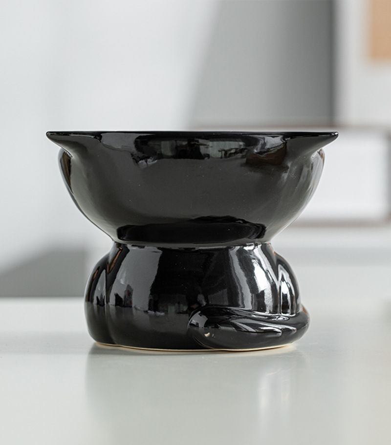 고양이 그릇 세라믹 고양이 음식 분지 검은 마시는 그릇 비스듬한 입 높은 발 애완 동물 개 식품 쌀 그릇 보호 자궁 경부 척추 방지 노크