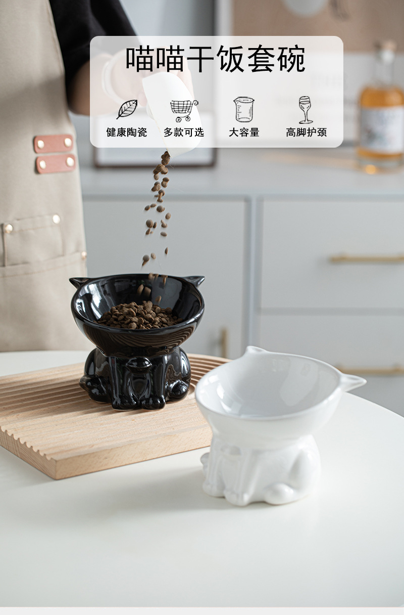 고양이 그릇 세라믹 고양이 음식 분지 검은 마시는 그릇 비스듬한 입 높은 발 애완 동물 개 식품 쌀 그릇 보호 자궁 경부 척추 방지 노크스토어 가기