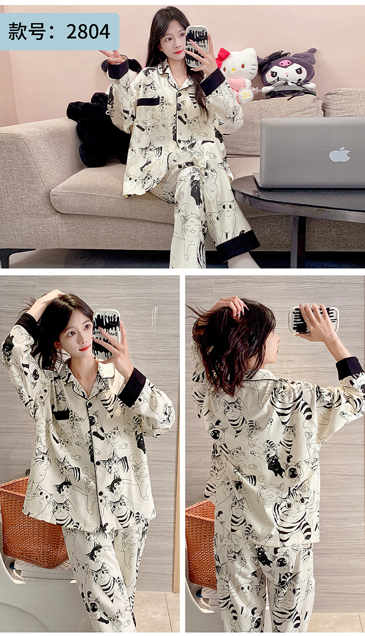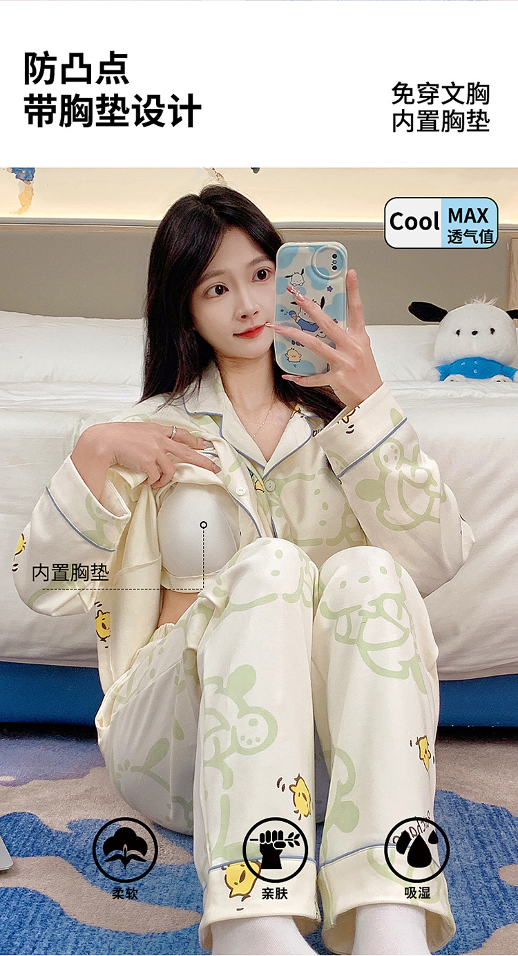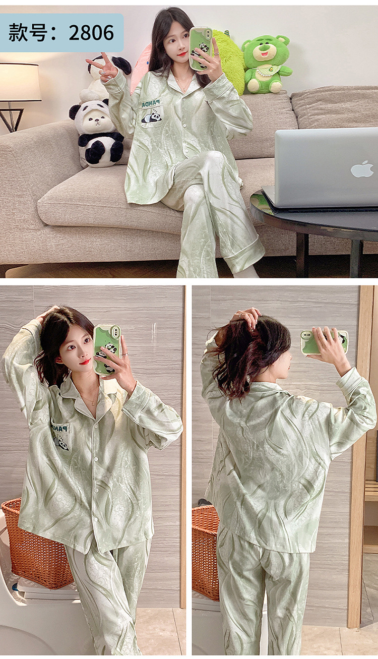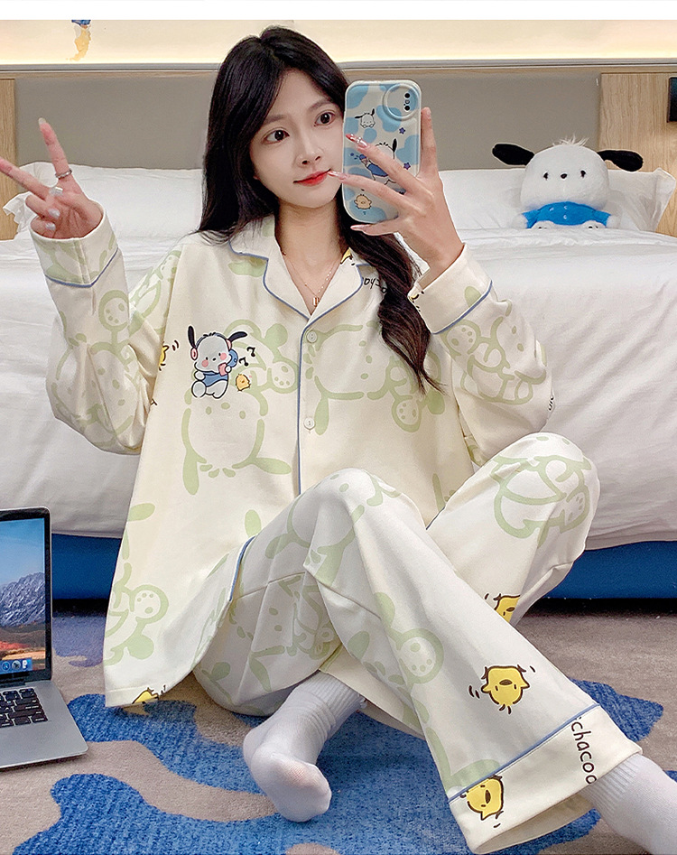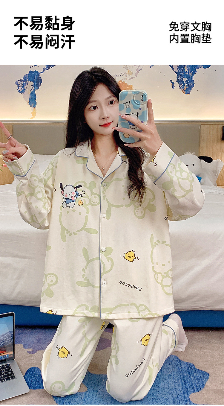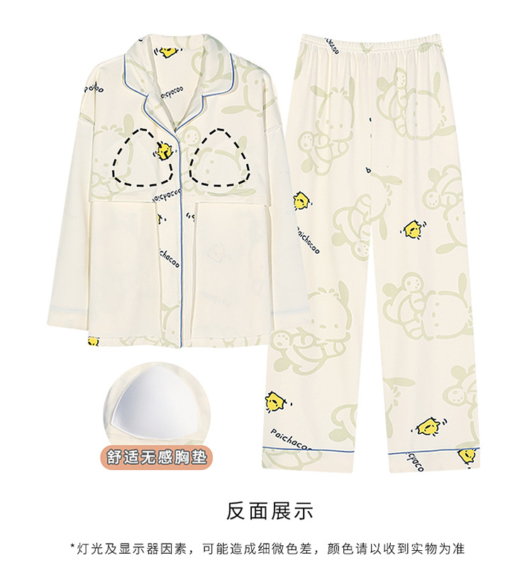 가슴 패드가 달린 잠옷 여성의 가을 모조 면 카디건 긴 소매 바지 세트 여성용 달콤한 귀여운 가을과 겨울 홈 옷스토어 가기