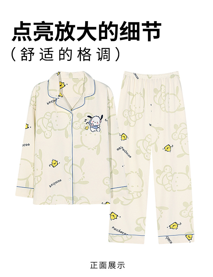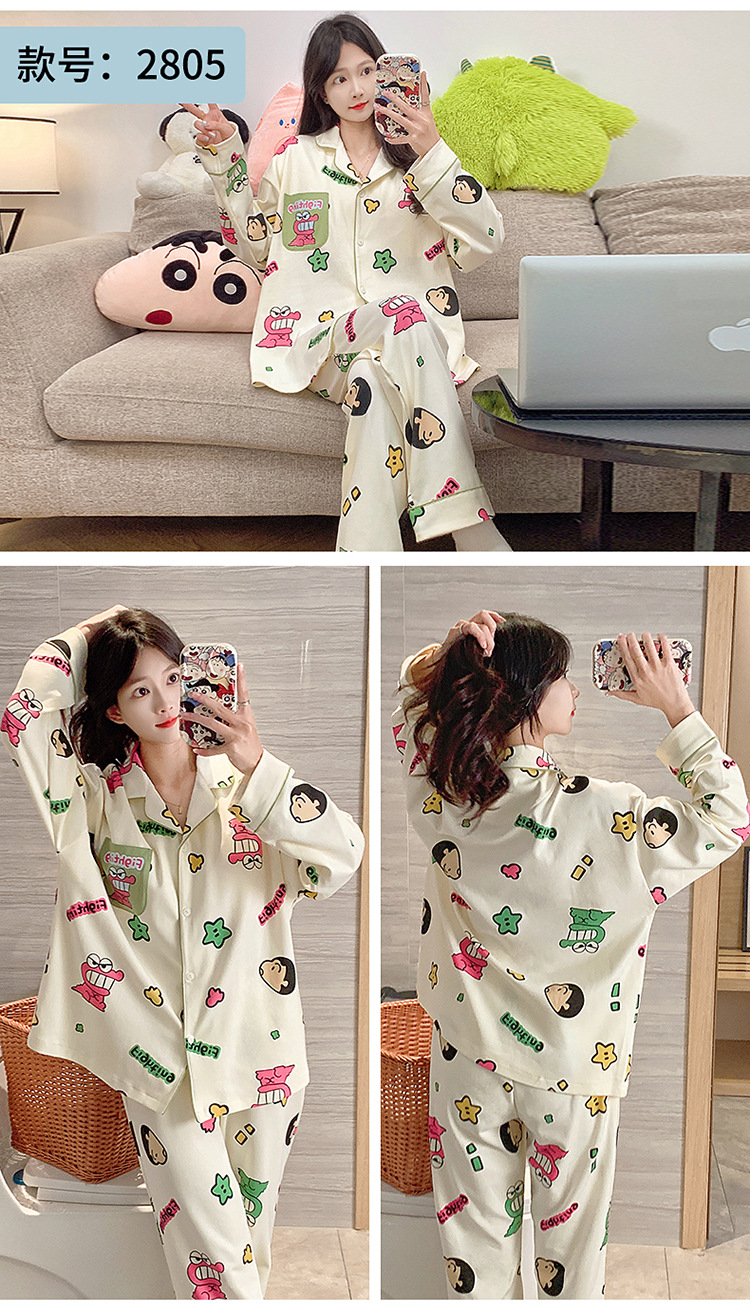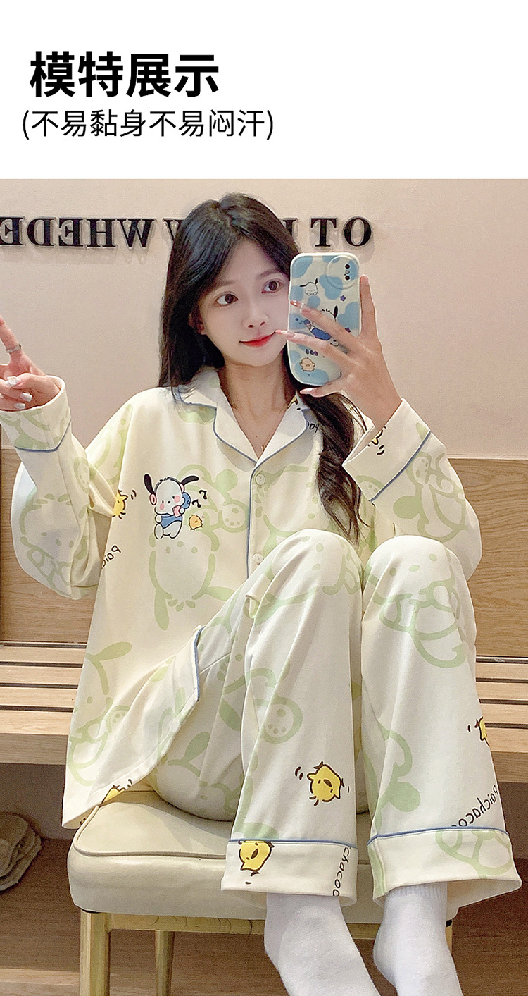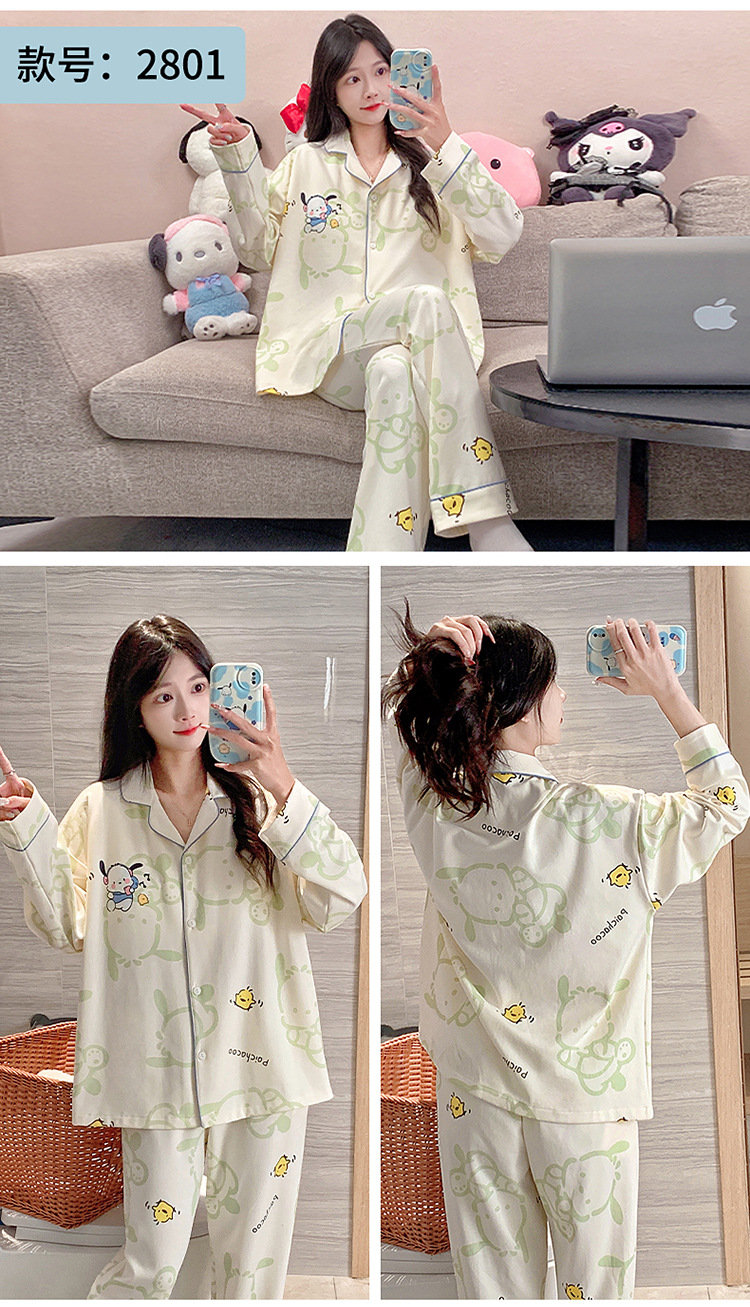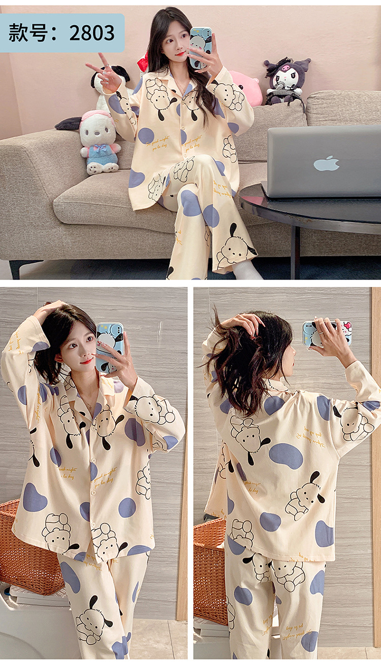 가슴 패드가 달린 잠옷 여성의 가을 모조 면 카디건 긴 소매 바지 세트 여성용 달콤한 귀여운 가을과 겨울 홈 옷스토어 가기