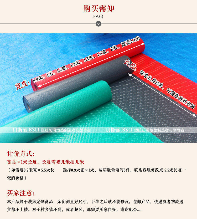 두꺼운 PVC 미끄럼 방지 플라스틱 매트 바닥 고무 바닥 카펫 방수 홈 발코니 창고 주방 큰 지역 상점