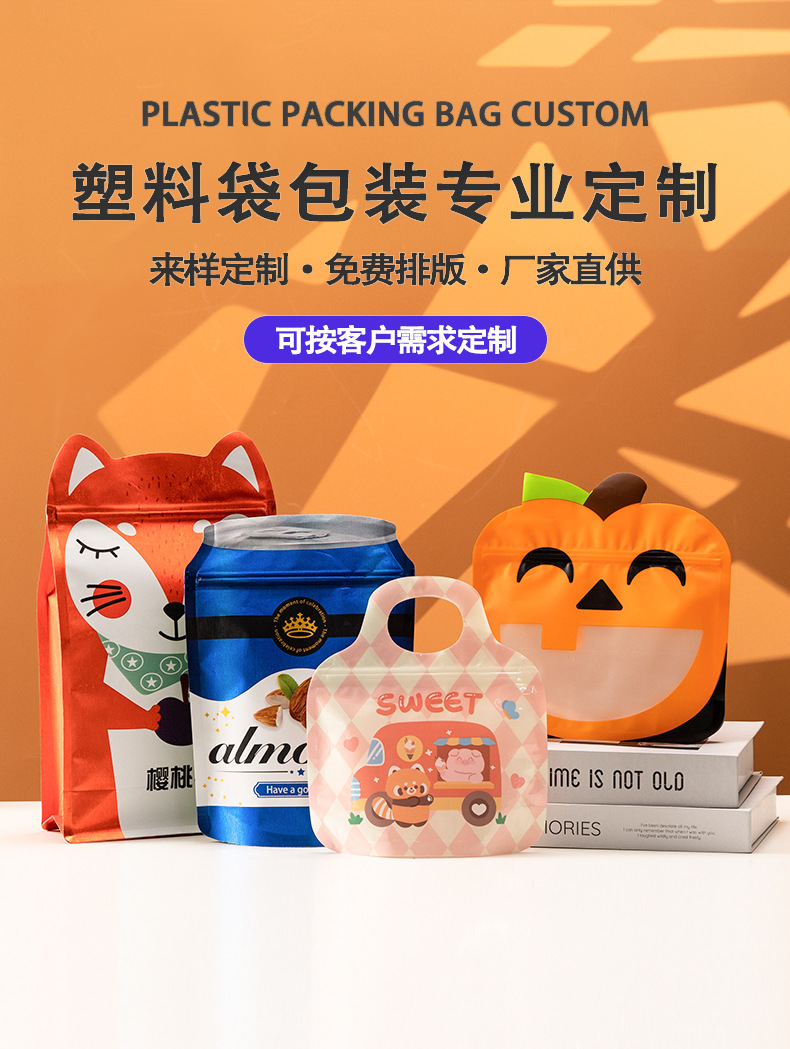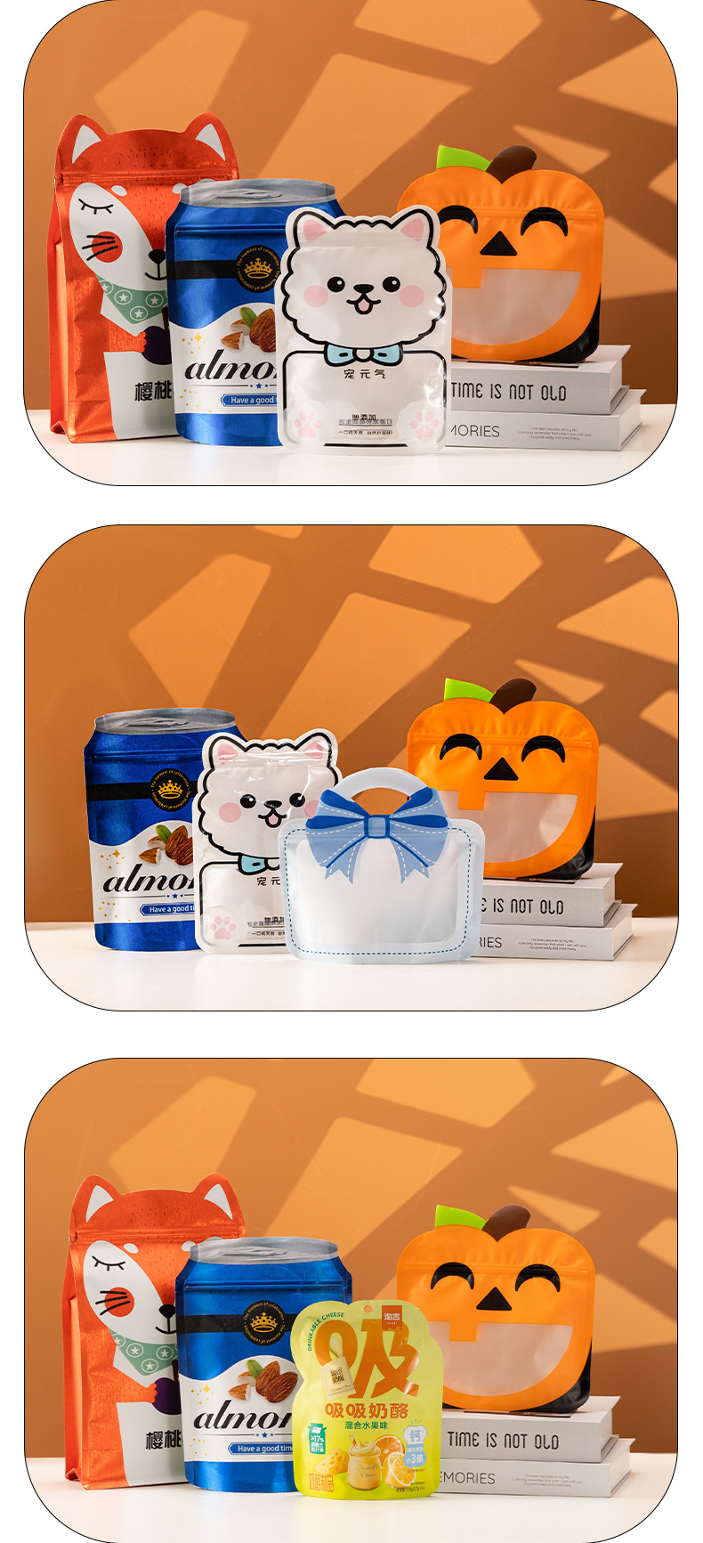특수 모양의 지퍼 포장 백 예열 스티커 자체 밀봉 백 알루미늄 3 면 밀봉 지퍼 백 식품 플라스틱 포장 가방스토어 가기