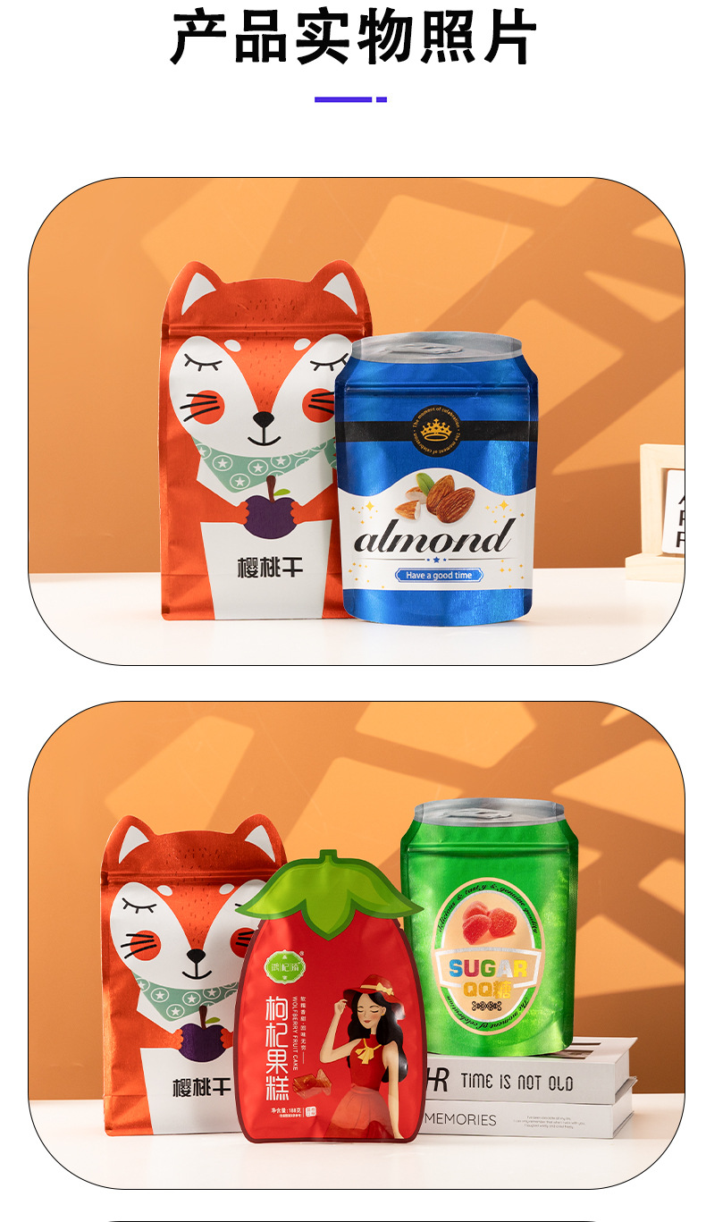 특수 모양의 지퍼 포장 백 예열 스티커 자체 밀봉 백 알루미늄 3 면 밀봉 지퍼 백 식품 플라스틱 포장 가방