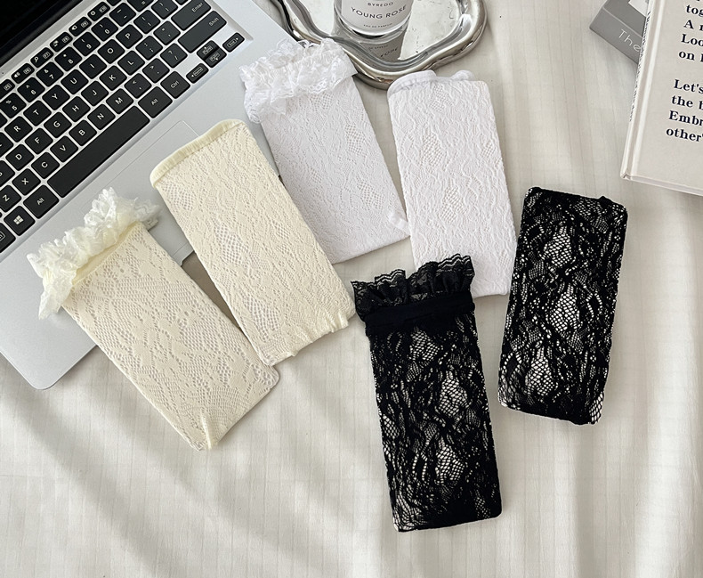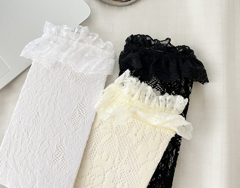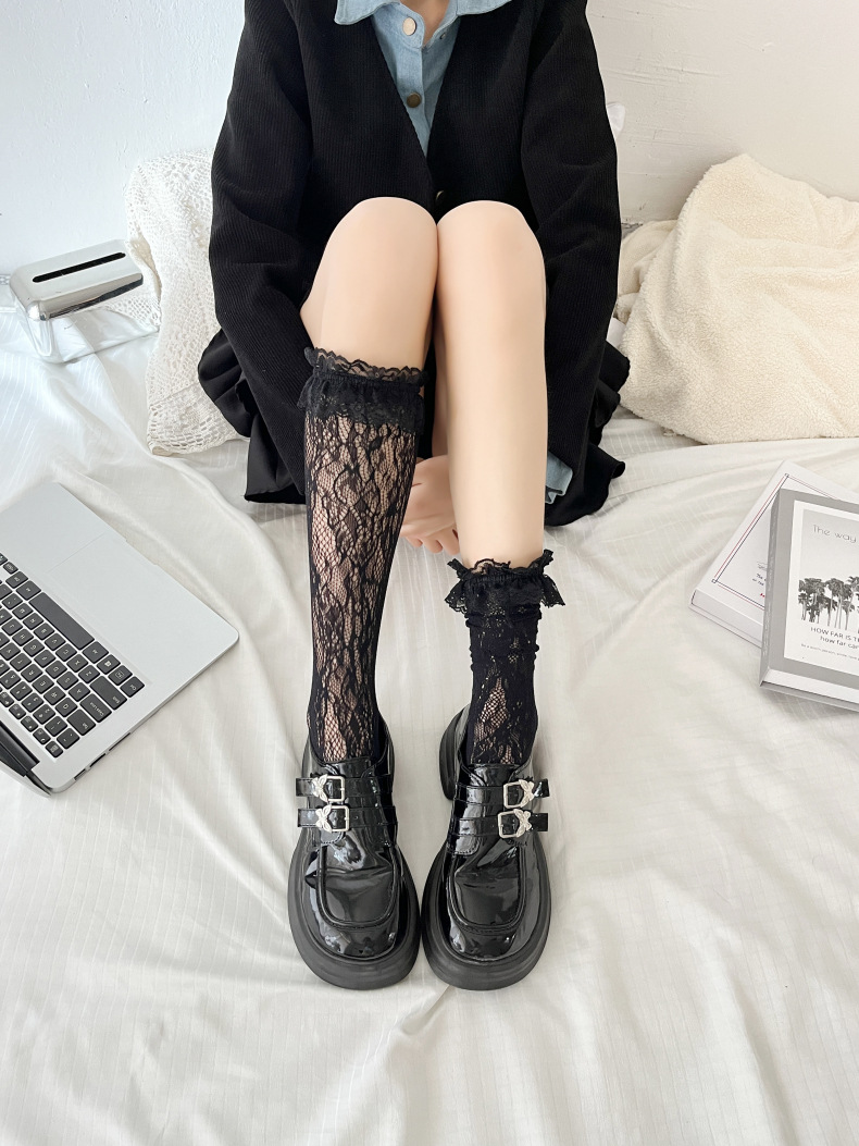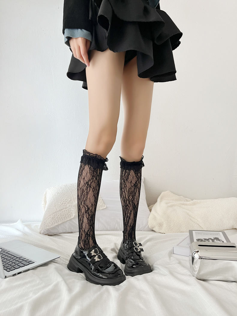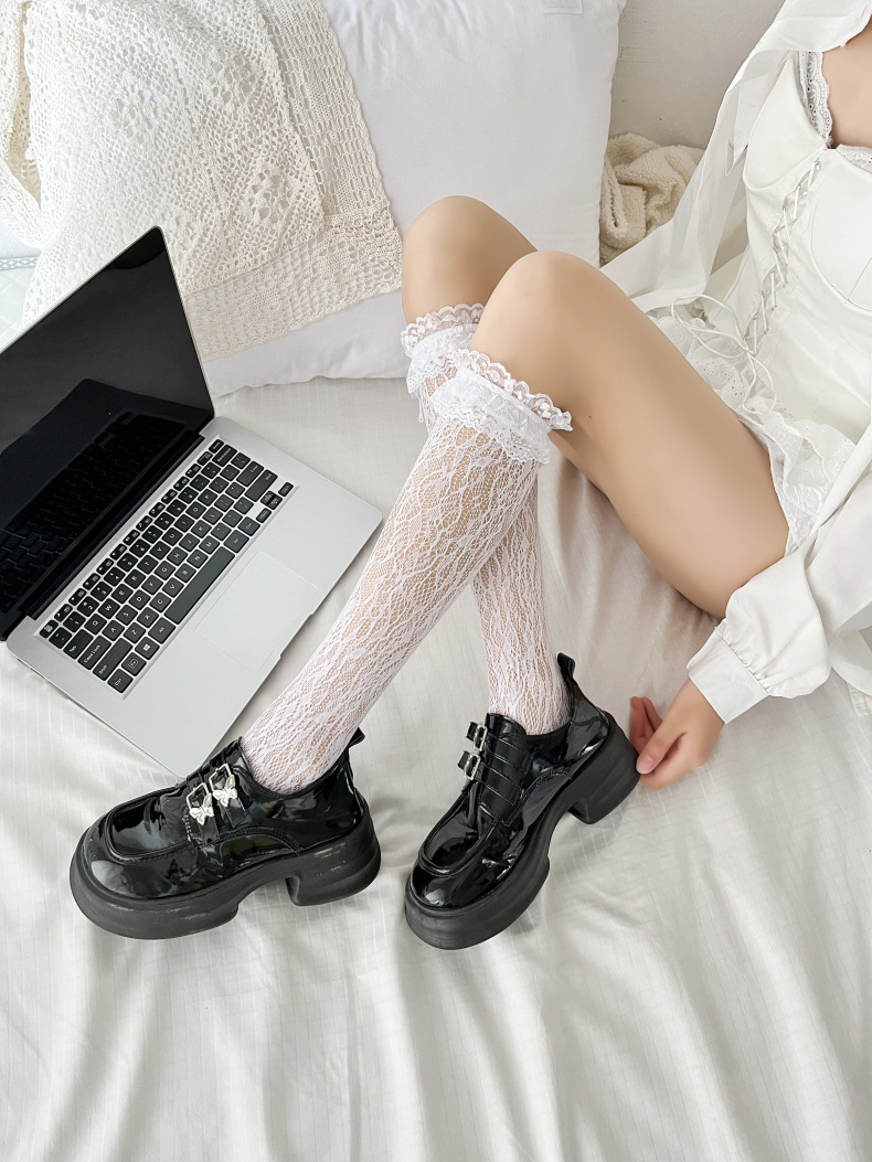 로리타 로터스 리프 레이스 레이스 보우 송아지 흑백 중장 메쉬 스트랩 JK 여성용 양말스토어 가기