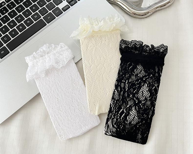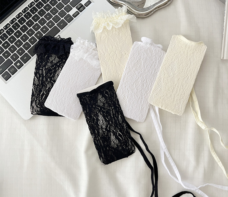 蕾丝花边蝴蝶结中筒袜