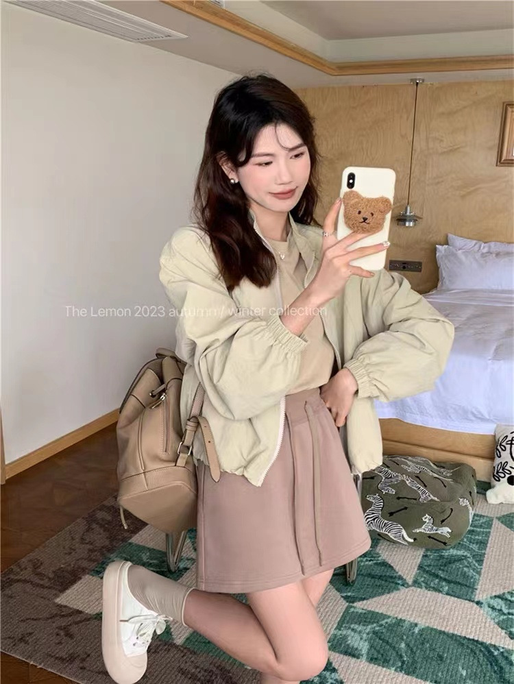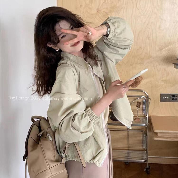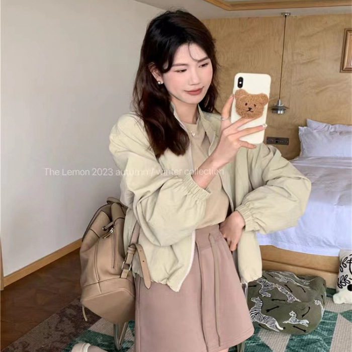 한국 스타일 수직 칼라 재킷 코트 여자 가을 2024 미국 스타일 레트로 캐주얼 루즈 러쉬 탑 작은 탑스토어 가기