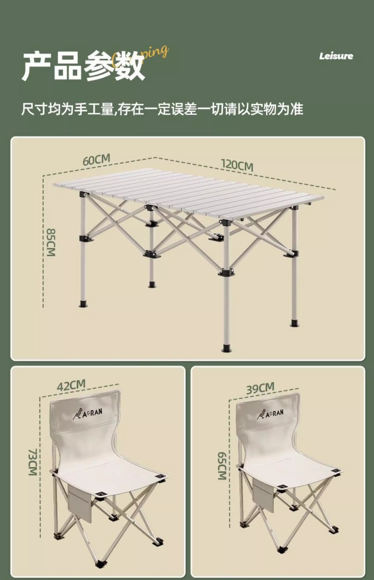 신제품 캠핑 캠핑 접이식 계란 롤 테이블 휴대용 피크닉 테이블과 의자 캠핑 테이블 세트 야외 레저 가구