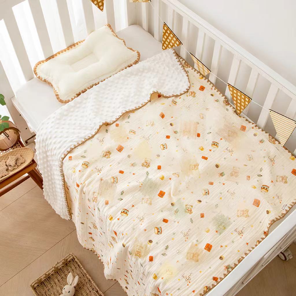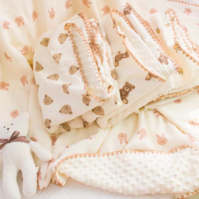 사계절 크레페 콩 담요 코튼 거즈 담요 신생아 부드러운 어린이 퀼트 유치원 점심 휴식 에어컨 이불