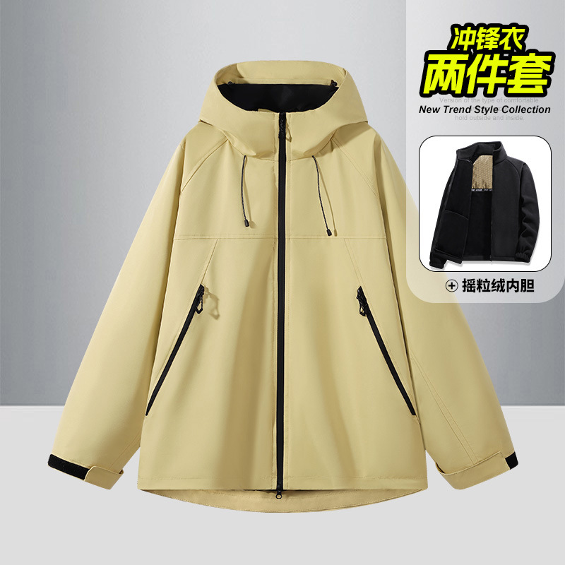 봄과 가을 남성과 여성의 방수 툴링 재킷 야외 등산 세트 기모 라이너 3 대 1 방풍 방수 충전 옷