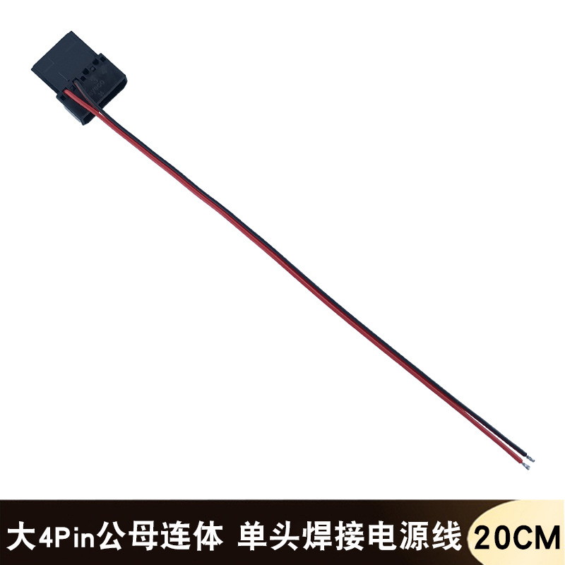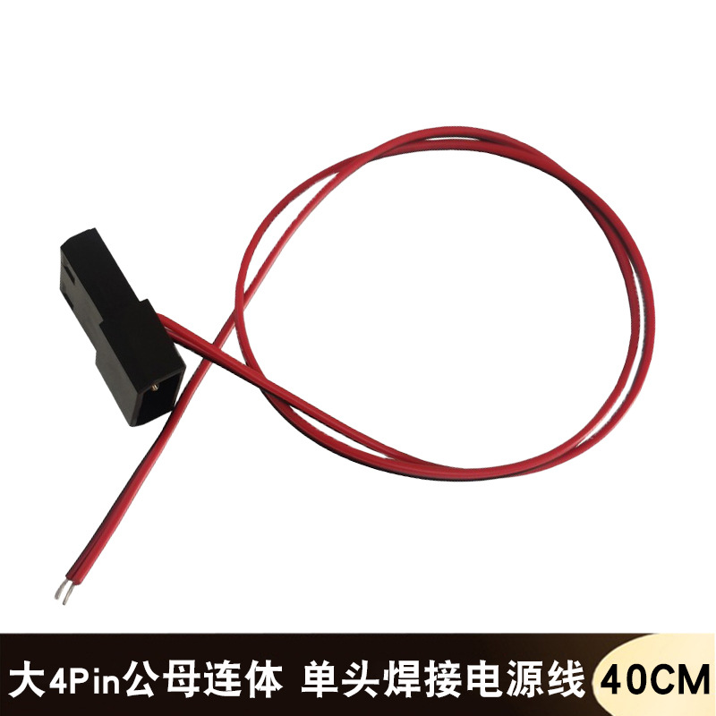 【产品接口】:一端是大4Pin公母连体单头,另一端剥线头浸锡焊接