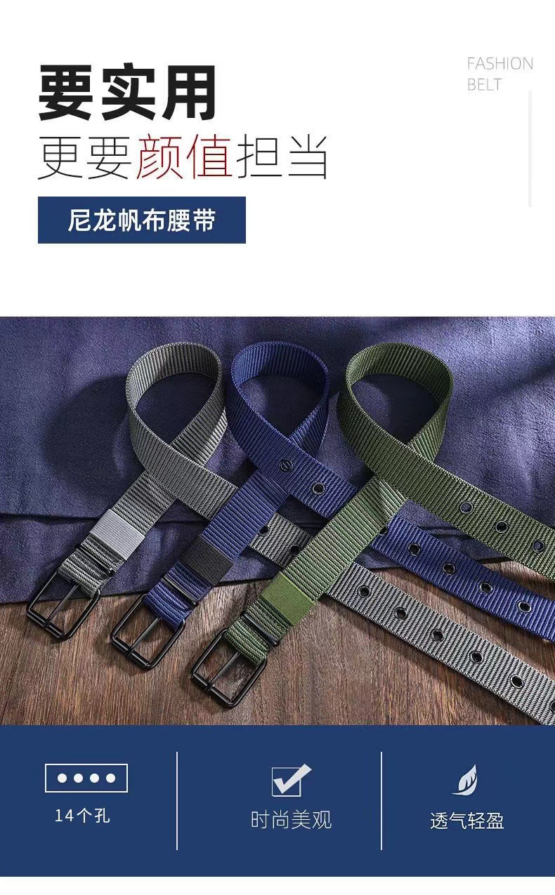 다공성 캔버스 벨트 남성용 청바지 핀 버클 벨트 학생 청소년 한국 스타일 롱 천 벨트 여성용 인스 스타일