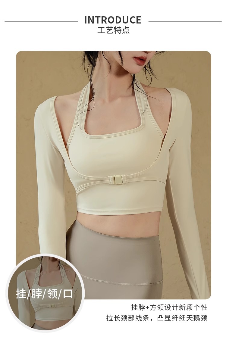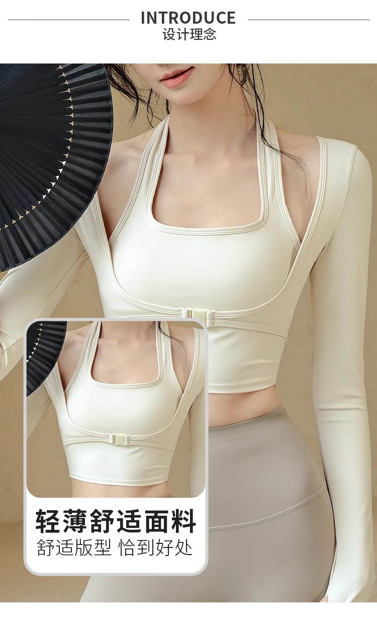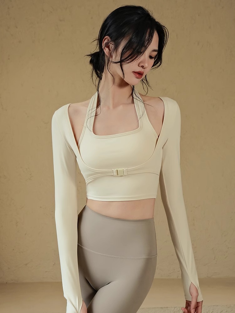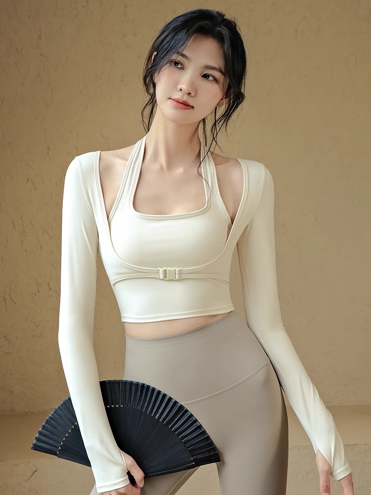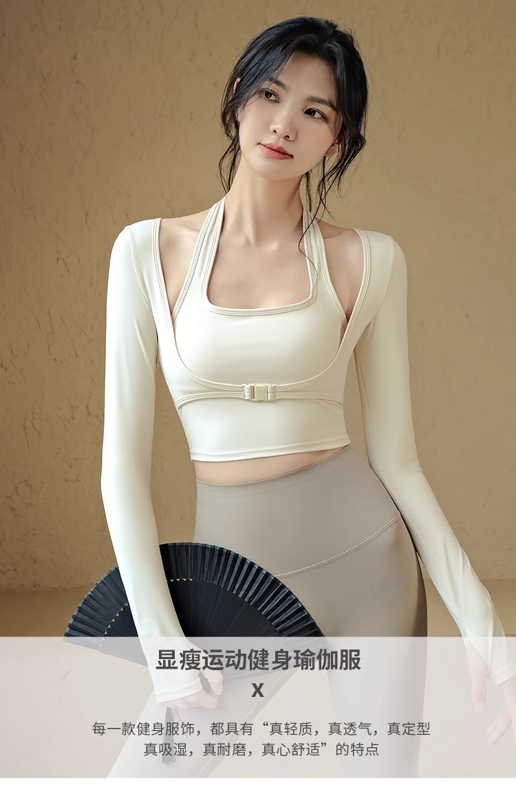 봄철 속건성 세트 러닝 피트니스 스포츠 끈탑 고정형 가슴 패드 내장 투피스 스타일 긴팔 요가복스토어 가기