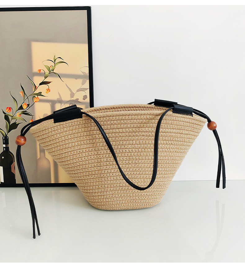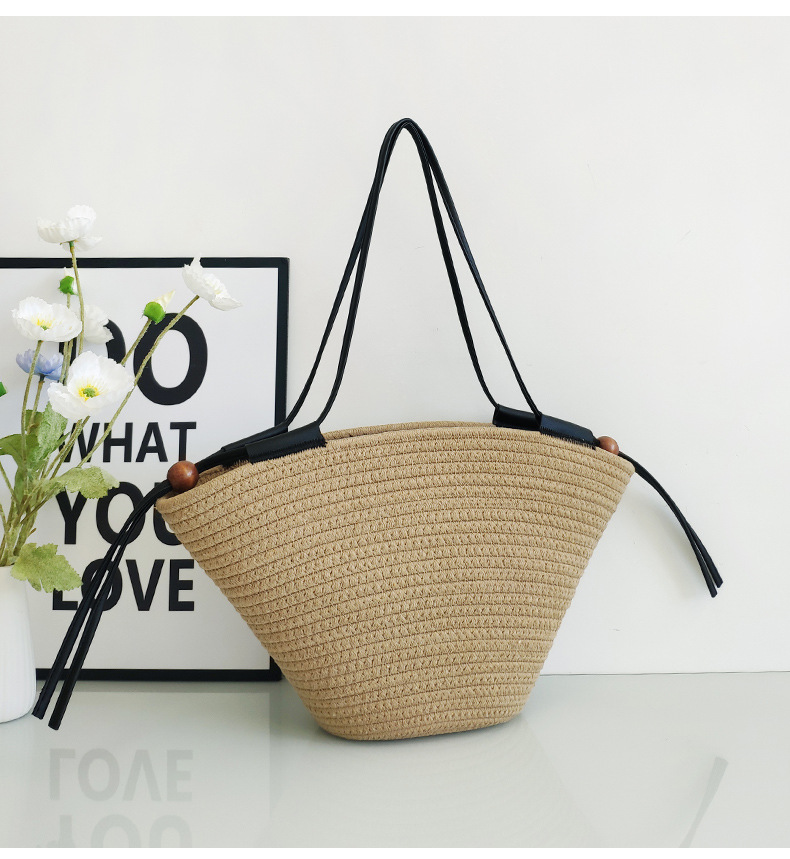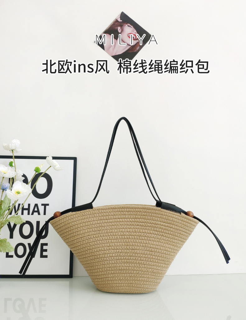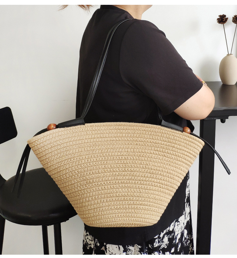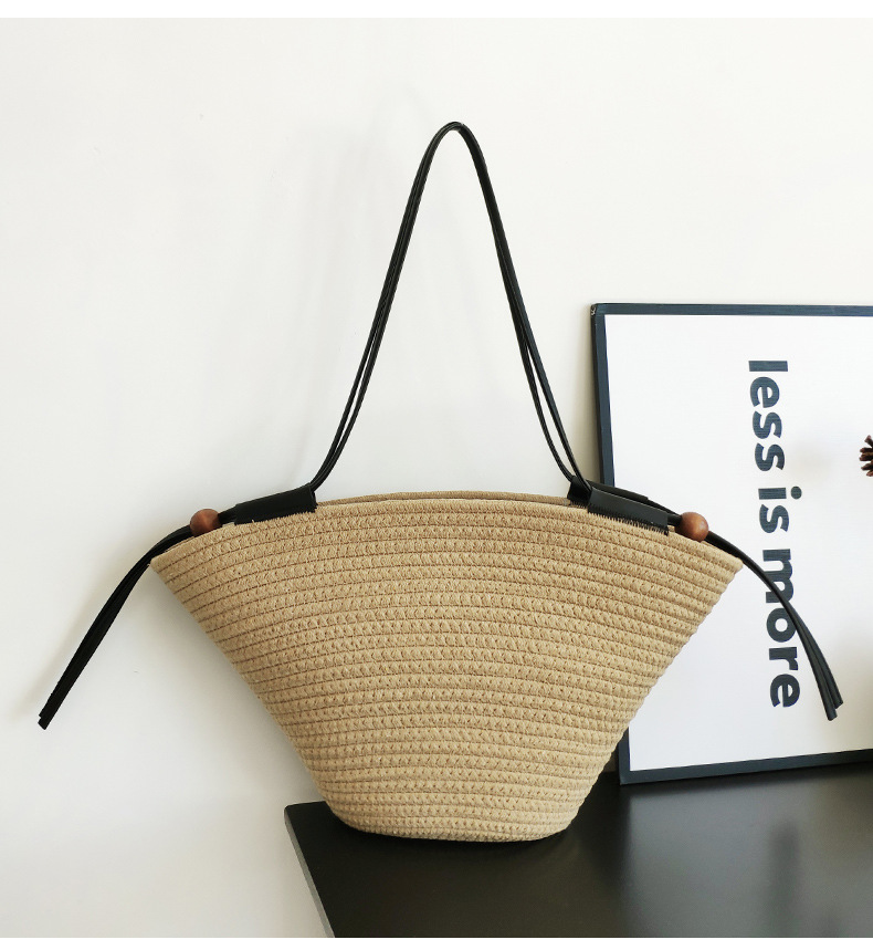 새로운 올 매치 원 숄더 대용량 홀리데이 토트 백 2024 면 로프 짠 작업 하이 엔드 여성용 통근 가방