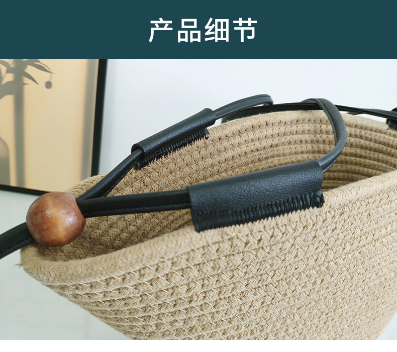 새로운 올 매치 원 숄더 대용량 홀리데이 토트 백 2024 면 로프 짠 작업 하이 엔드 여성용 통근 가방스토어 가기