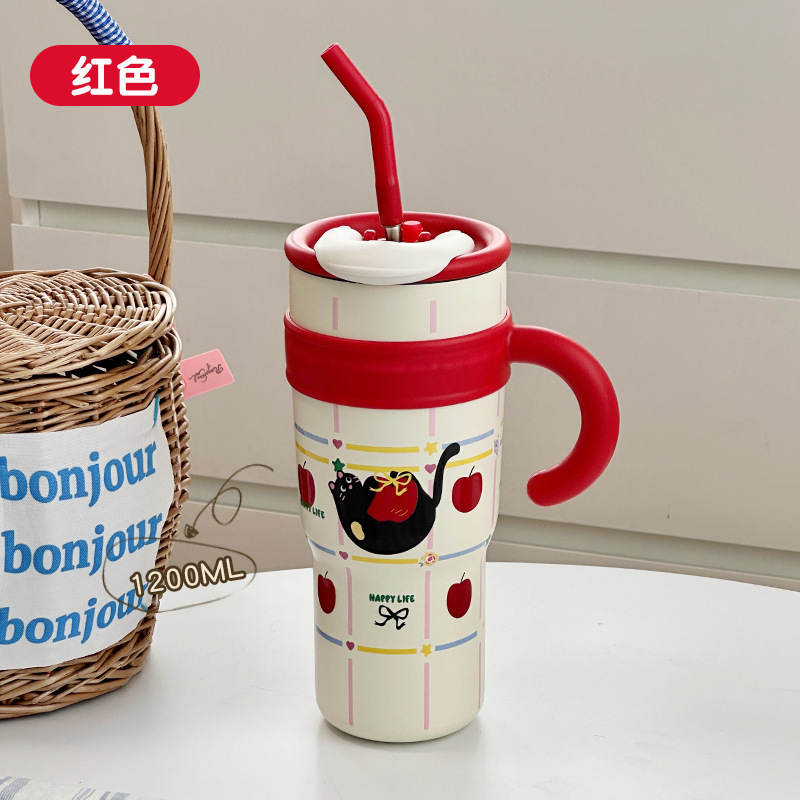 귀여운 만화 우아한 아이스 컵 높은 색상 가치 용강 대용량 보온병 스테인레스 스틸 빅 맥 절연 워터 컵