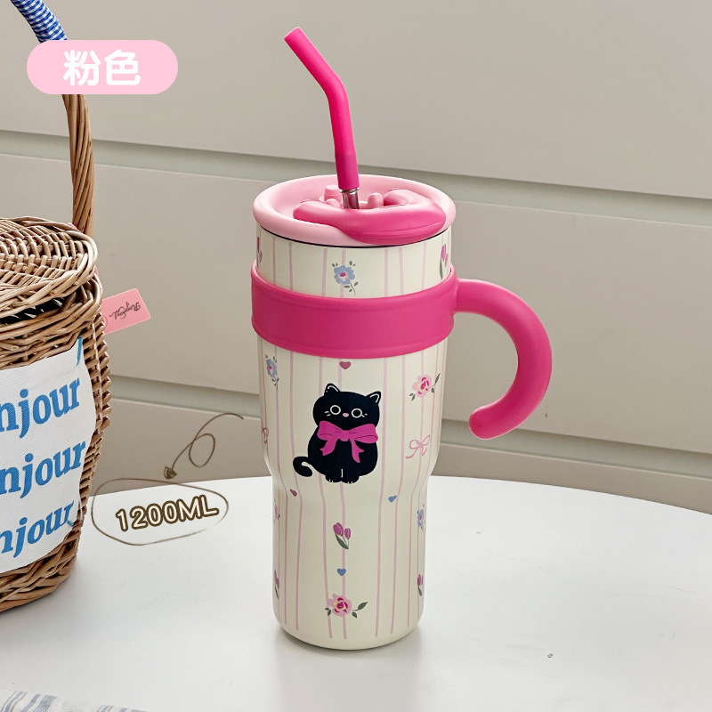귀여운 만화 우아한 아이스 컵 높은 색상 가치 용강 대용량 보온병 스테인레스 스틸 빅 맥 절연 워터 컵스토어 가기