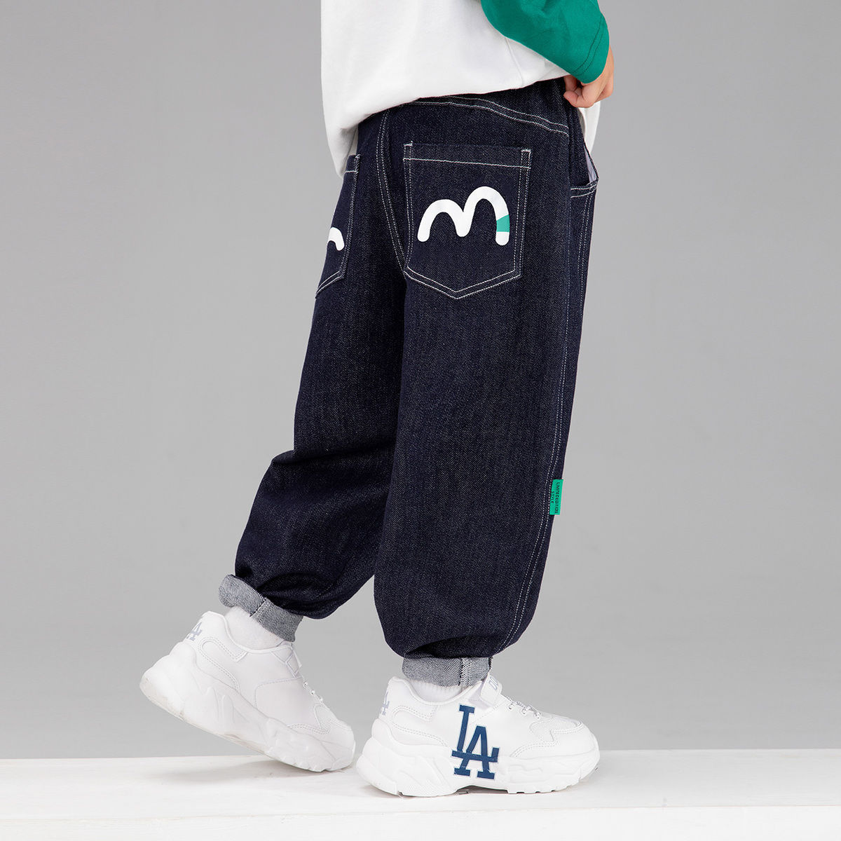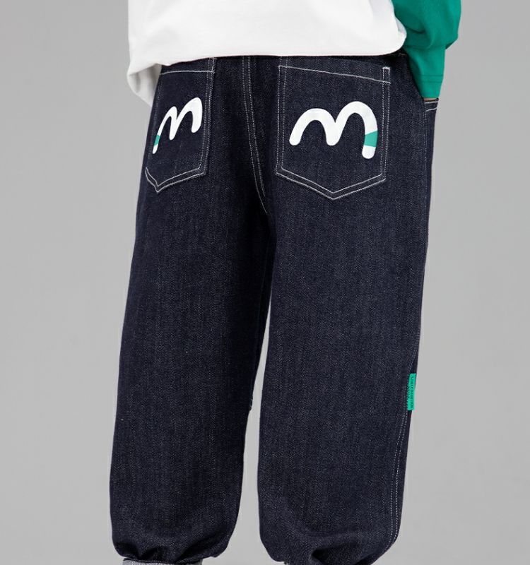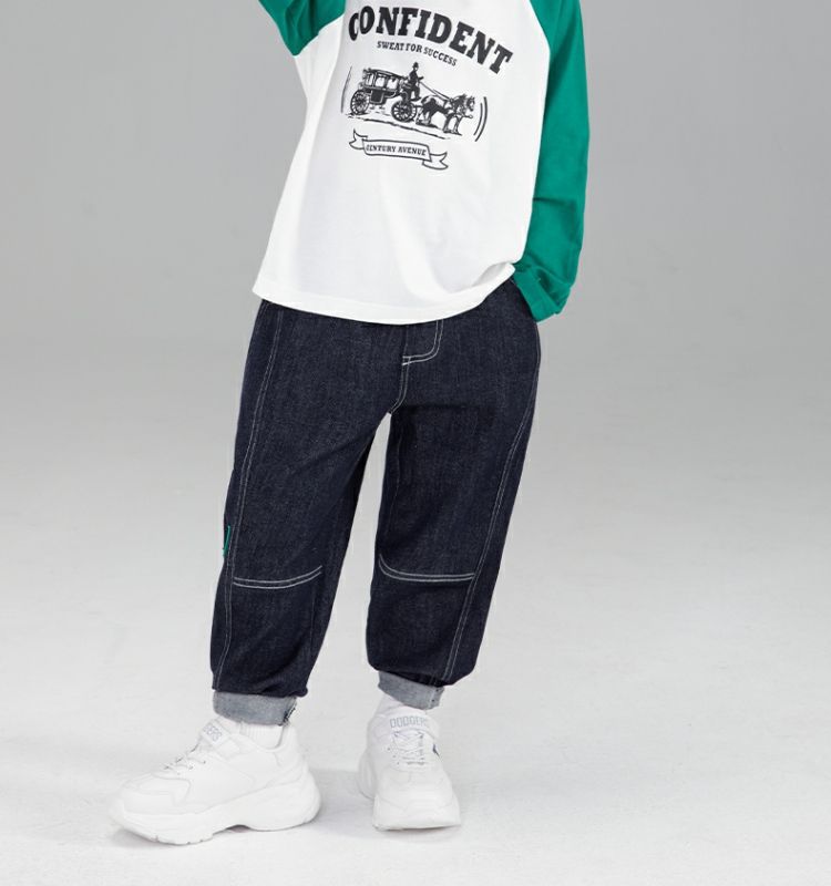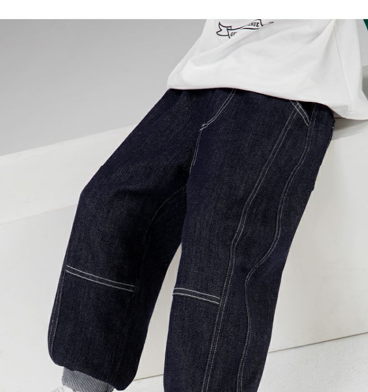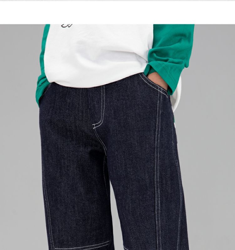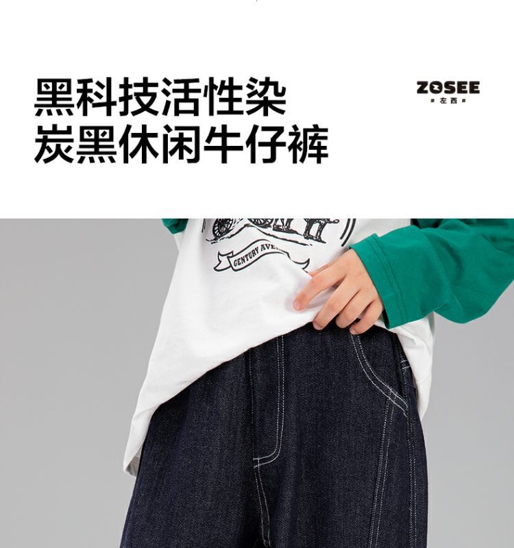 왼쪽 서쪽 아동복 데님 바지 2024 봄과 가을 새로운 어린이 캐주얼 서양식 토레 바지 페이딩 방지 바지스토어 가기