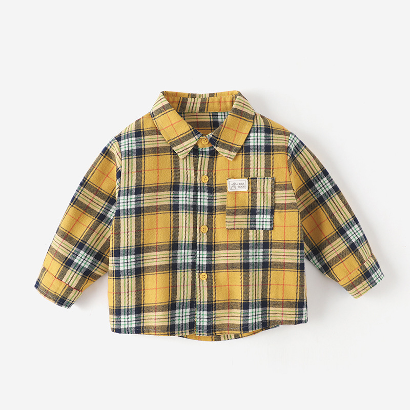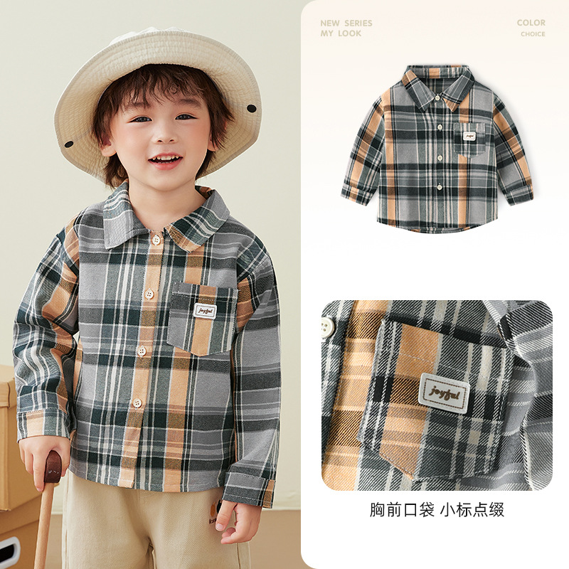 Kuwa Mi 가을 새 소년 한국 스타일 대비 색격자 셔츠 캐주얼 다목적 어린이 긴팔 옷깃 셔츠 유행스토어 가기