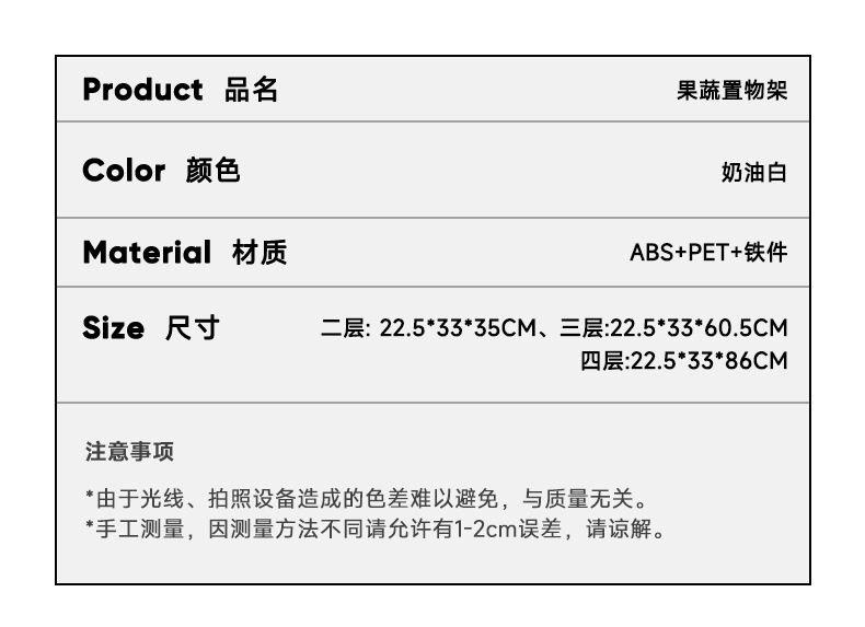 • 4단 이동식 수납선반(배수판 포함) - 크림화이트
