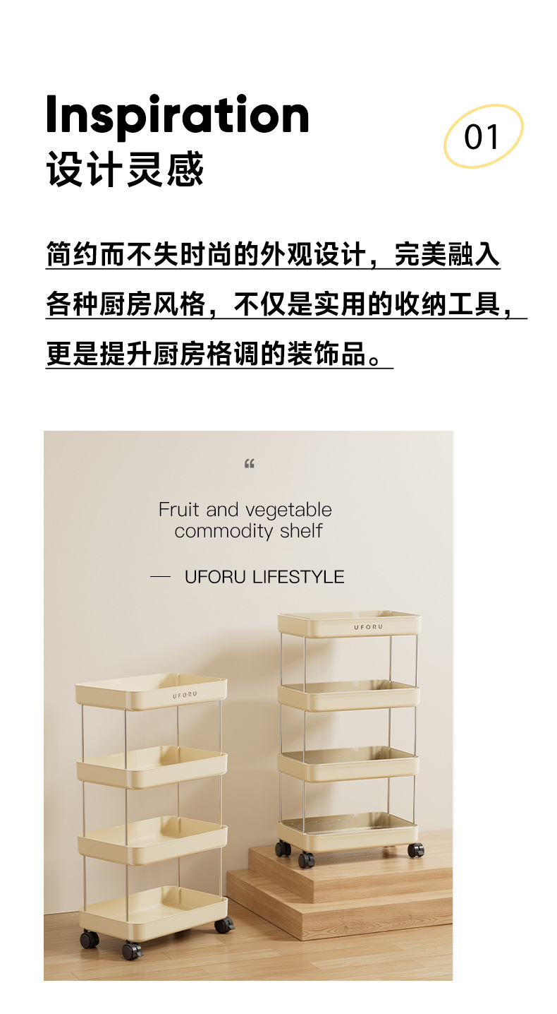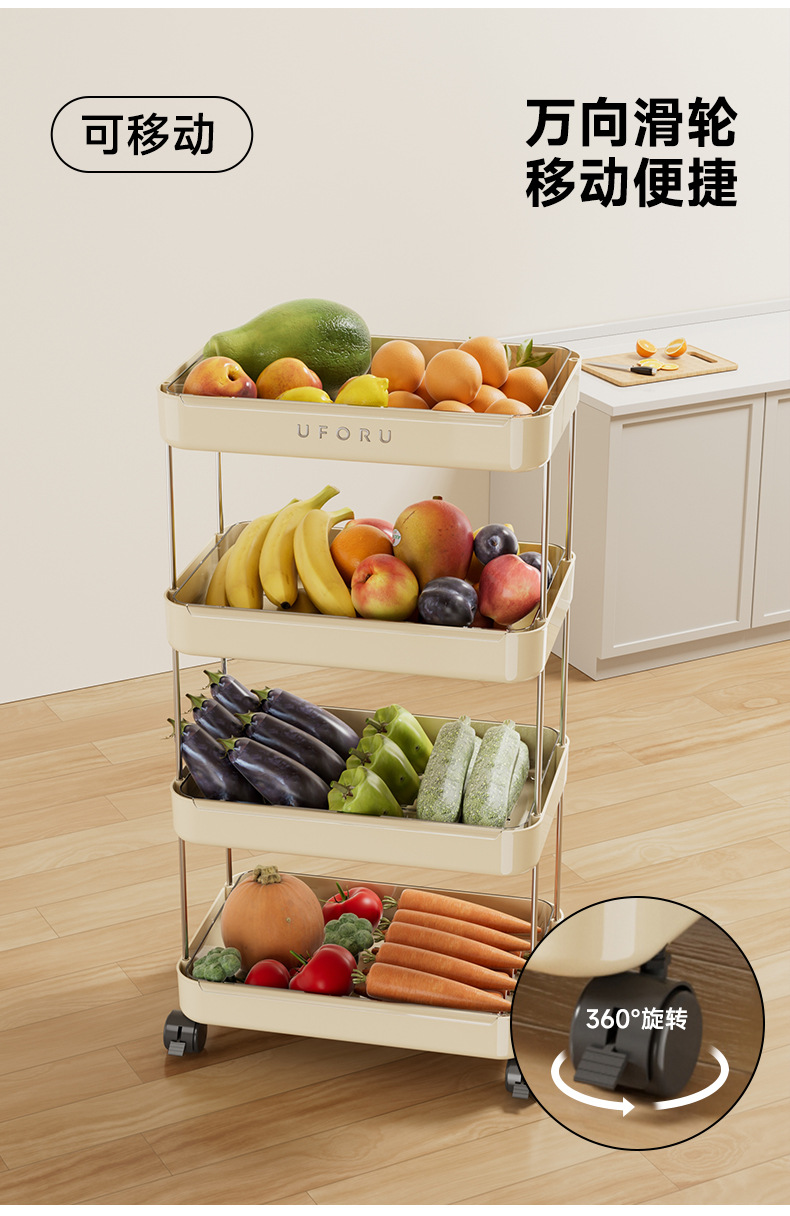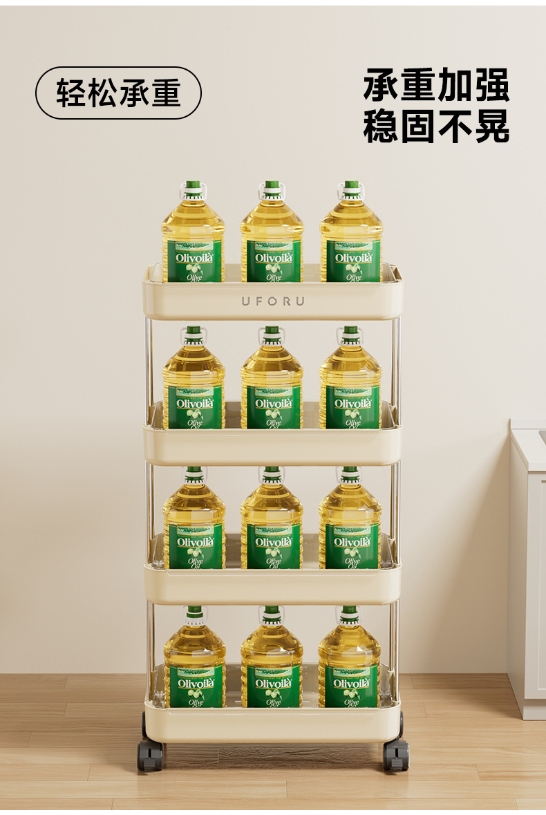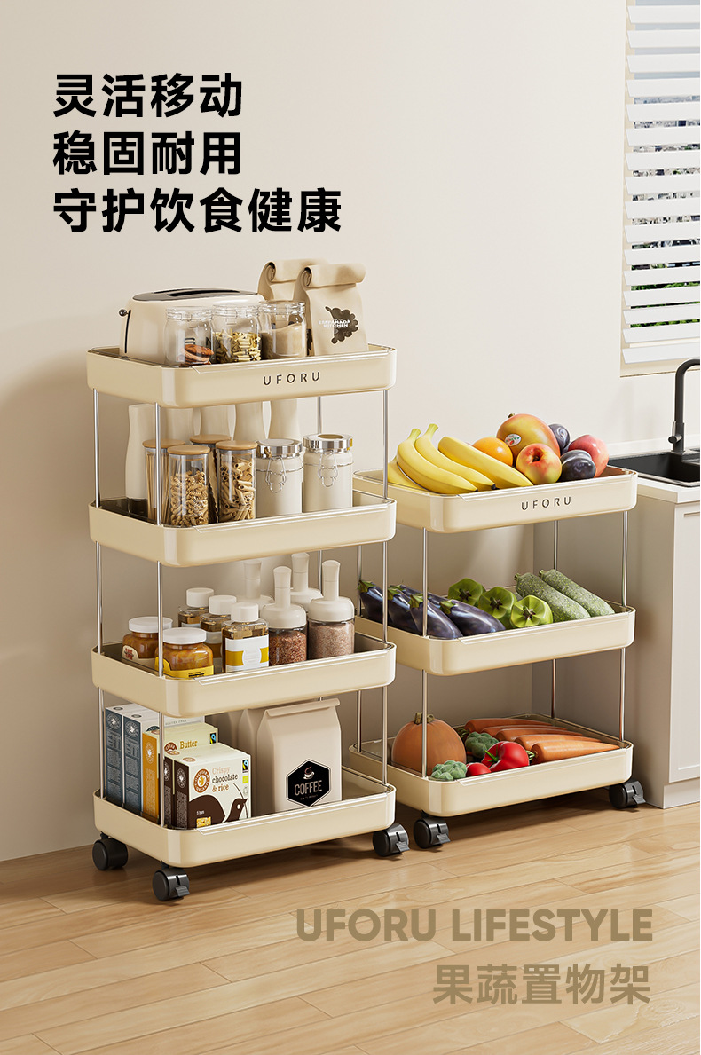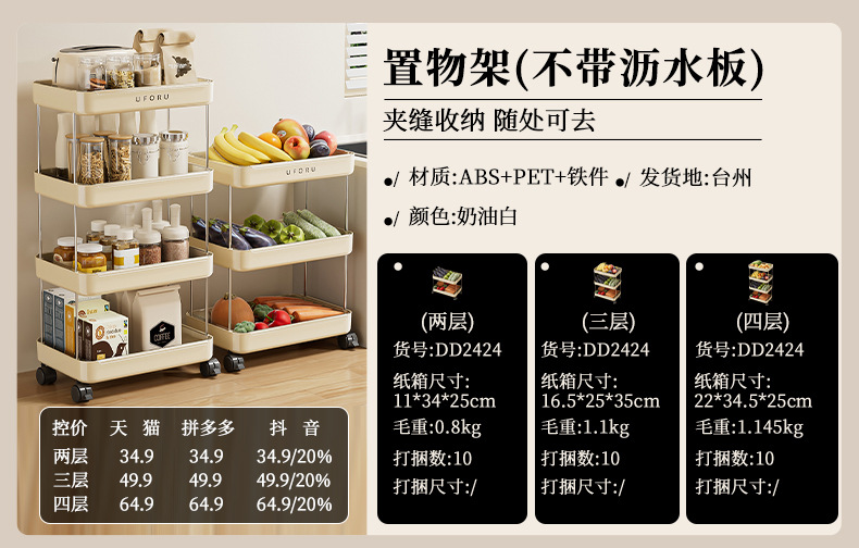 트롤리 스토리지 랙 바닥 형 이동식 다층 스택 갭 스토리지 주방 과일 조미료 보관 랙