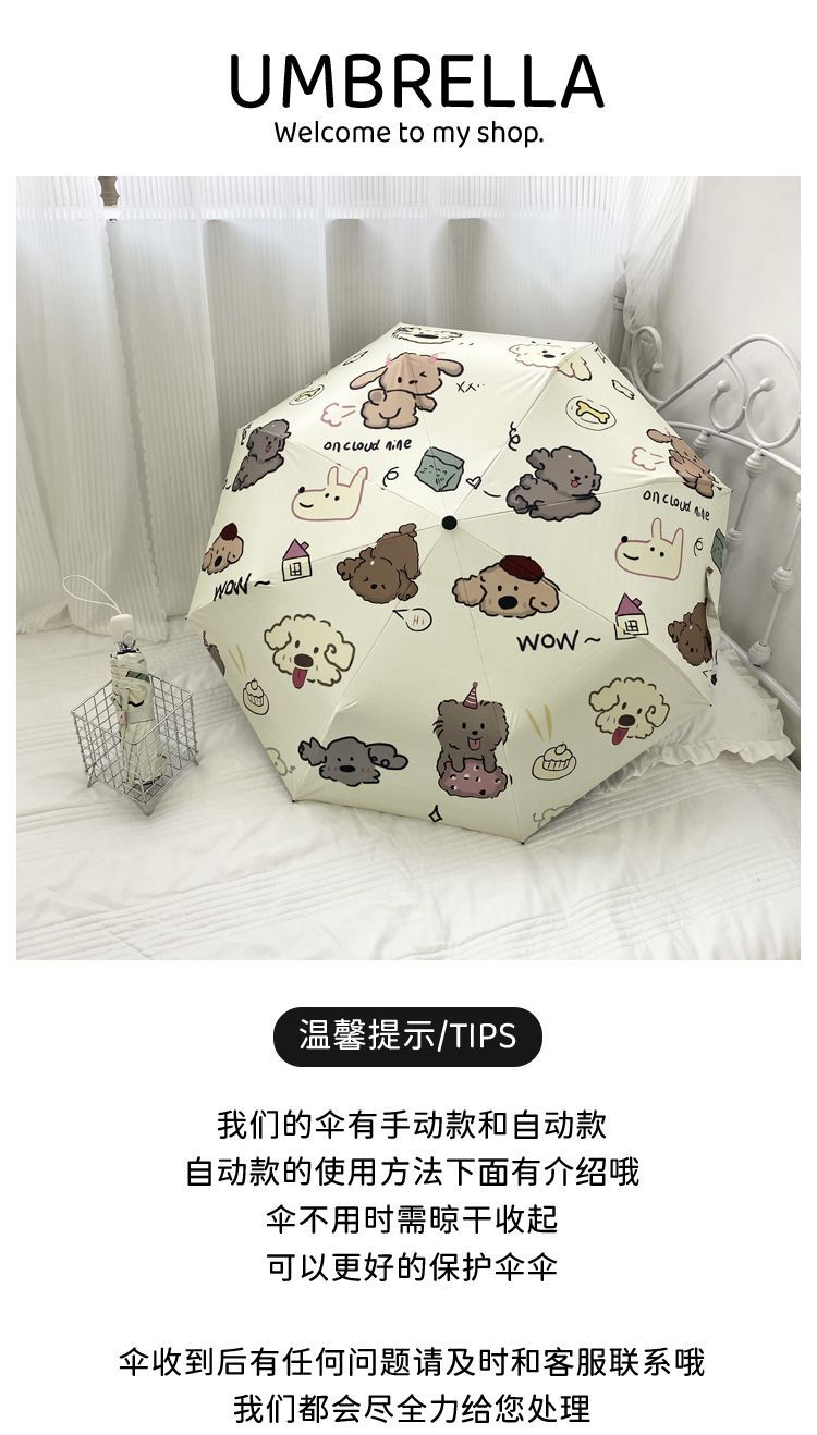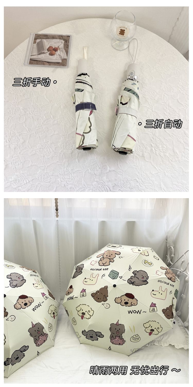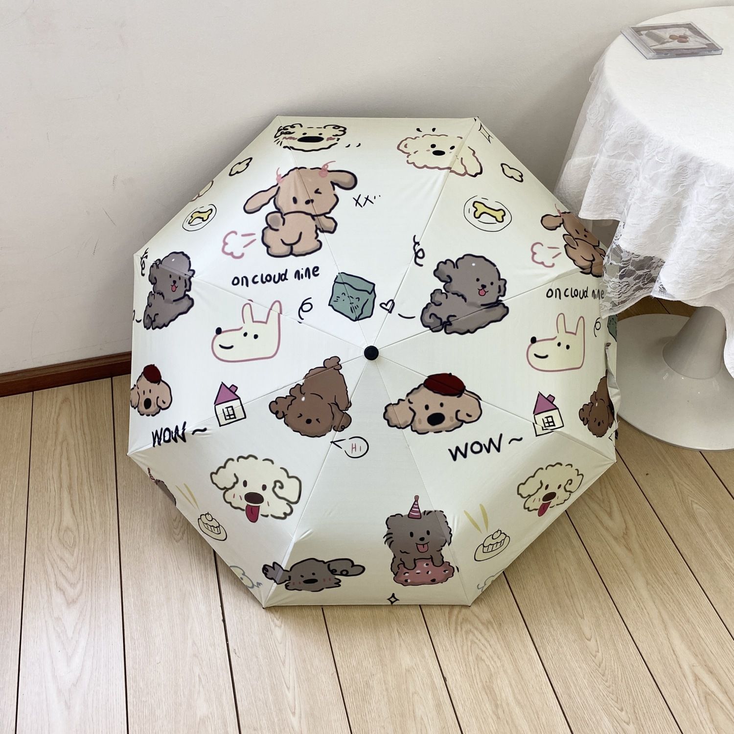 자동 만화 강아지 우산 태양 우산 귀여운 맑고 비오는 이중 목적 검은 고무 접히는 선 스크린 UV 햇빛 우산스토어 가기