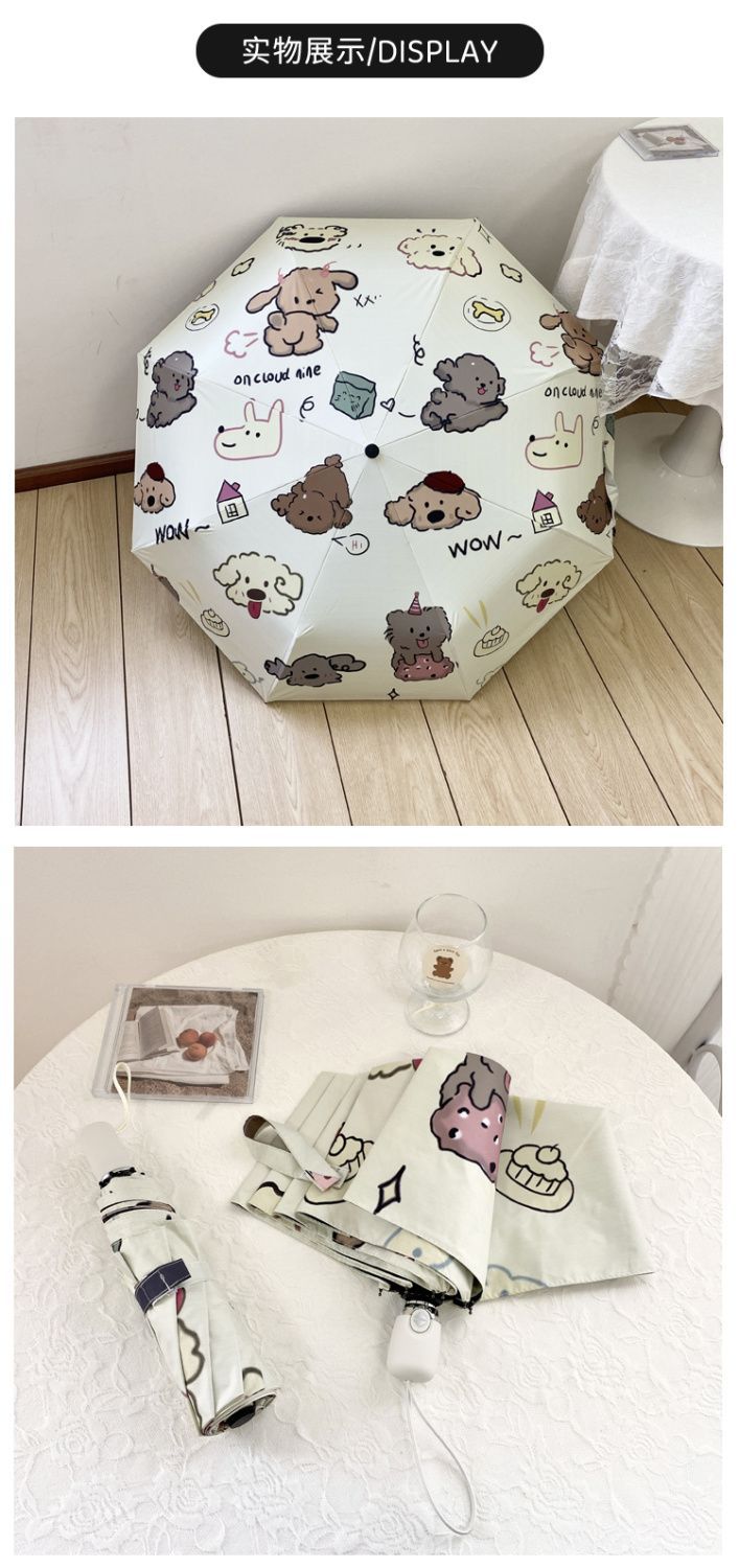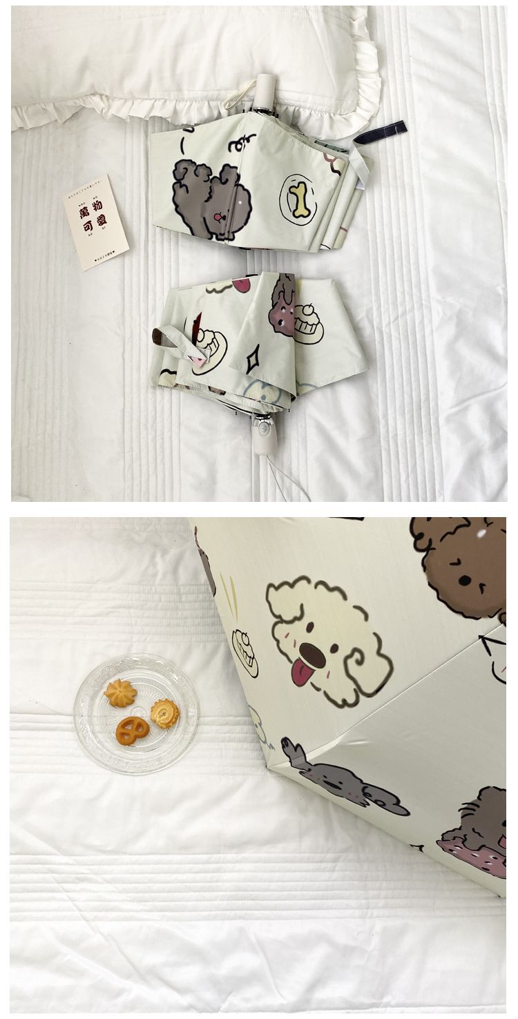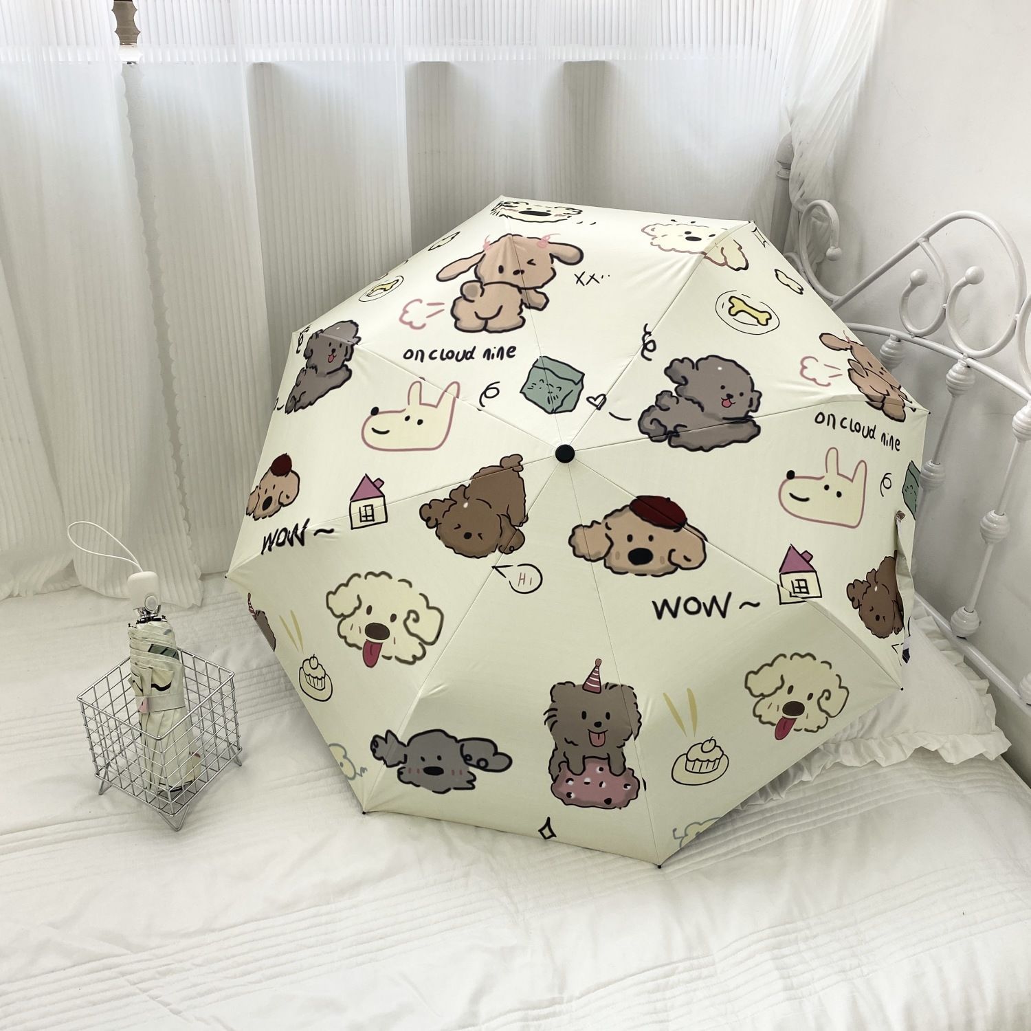 자동 만화 강아지 우산 태양 우산 귀여운 맑고 비오는 이중 목적 검은 고무 접히는 선 스크린 UV 햇빛 우산스토어 가기