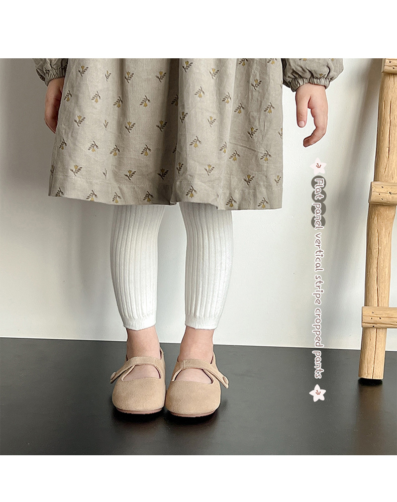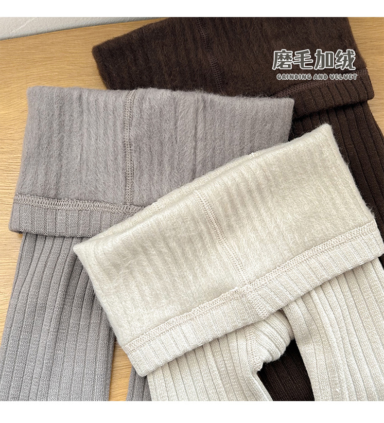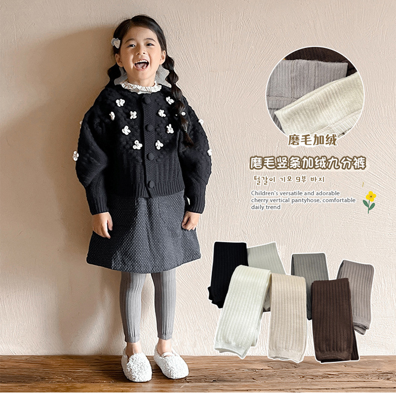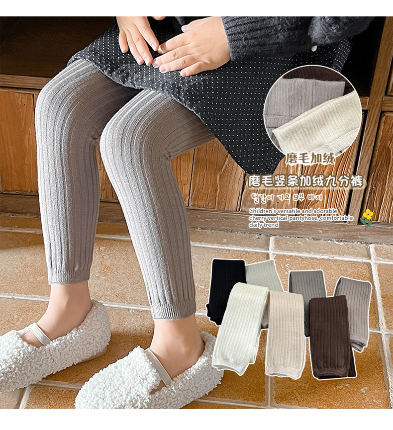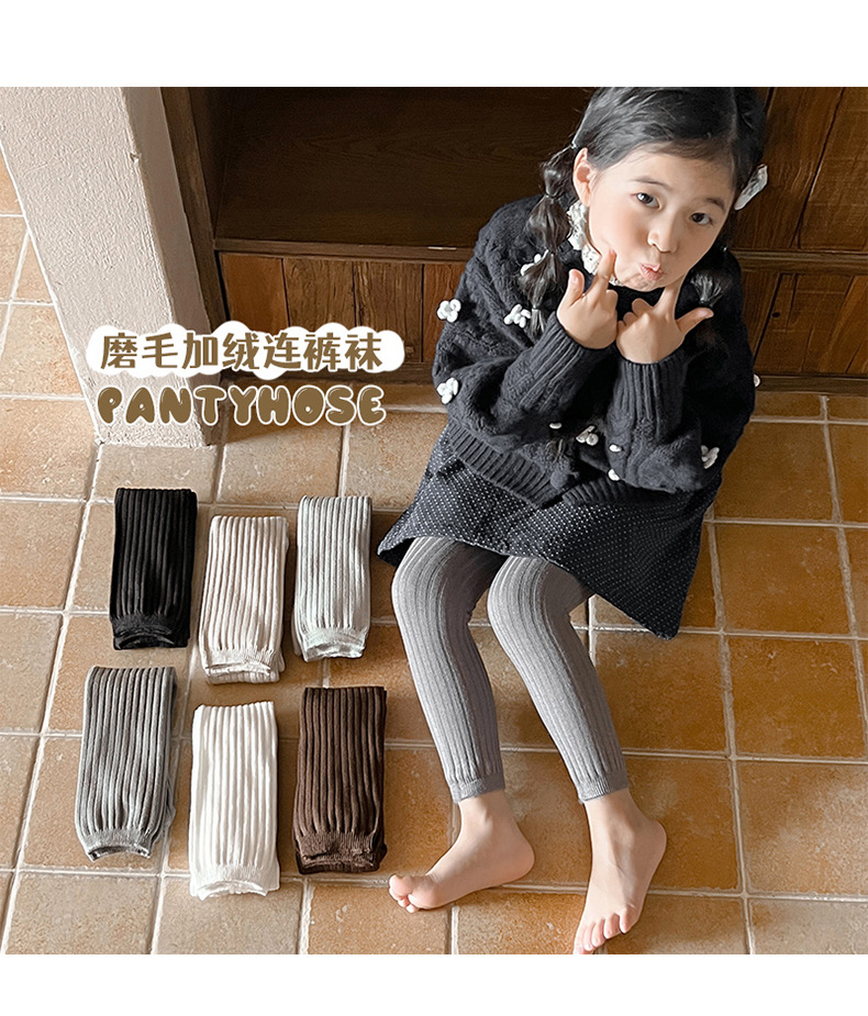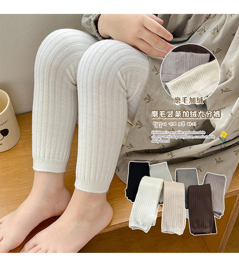 2024 가을과 겨울 얇은 벨벳 어린이 팬티 스타킹 따뜻한 칫솔질 소녀 레깅스 단색 수직 스트립 올 매치 베이비 스타킹
