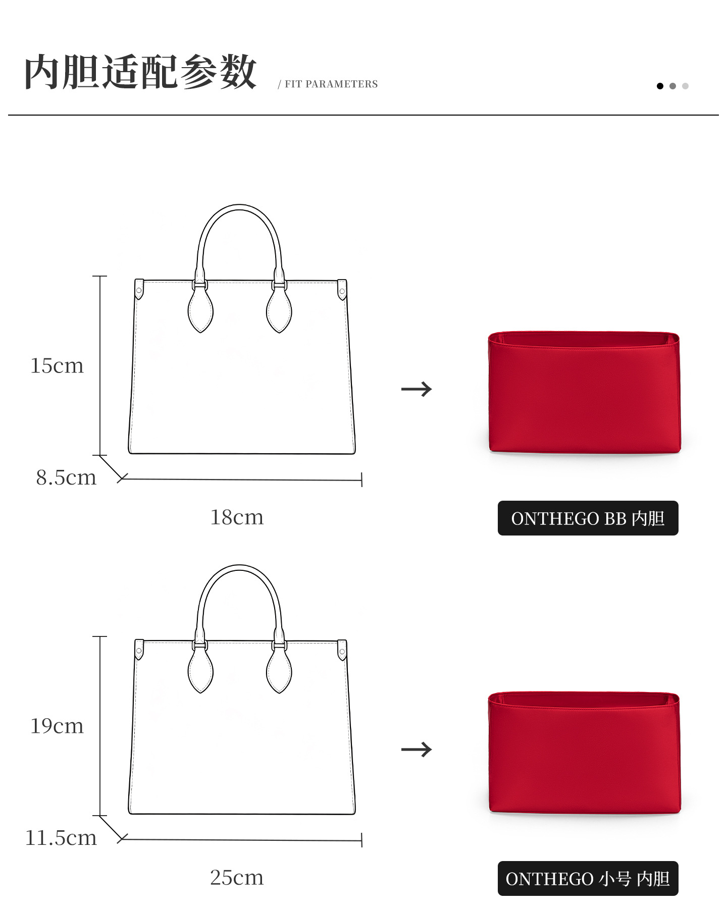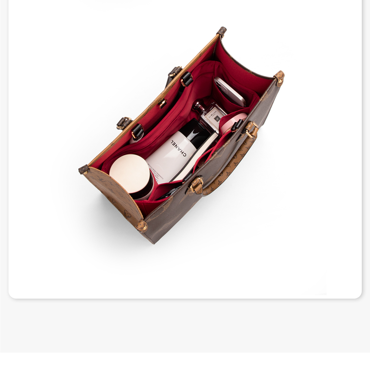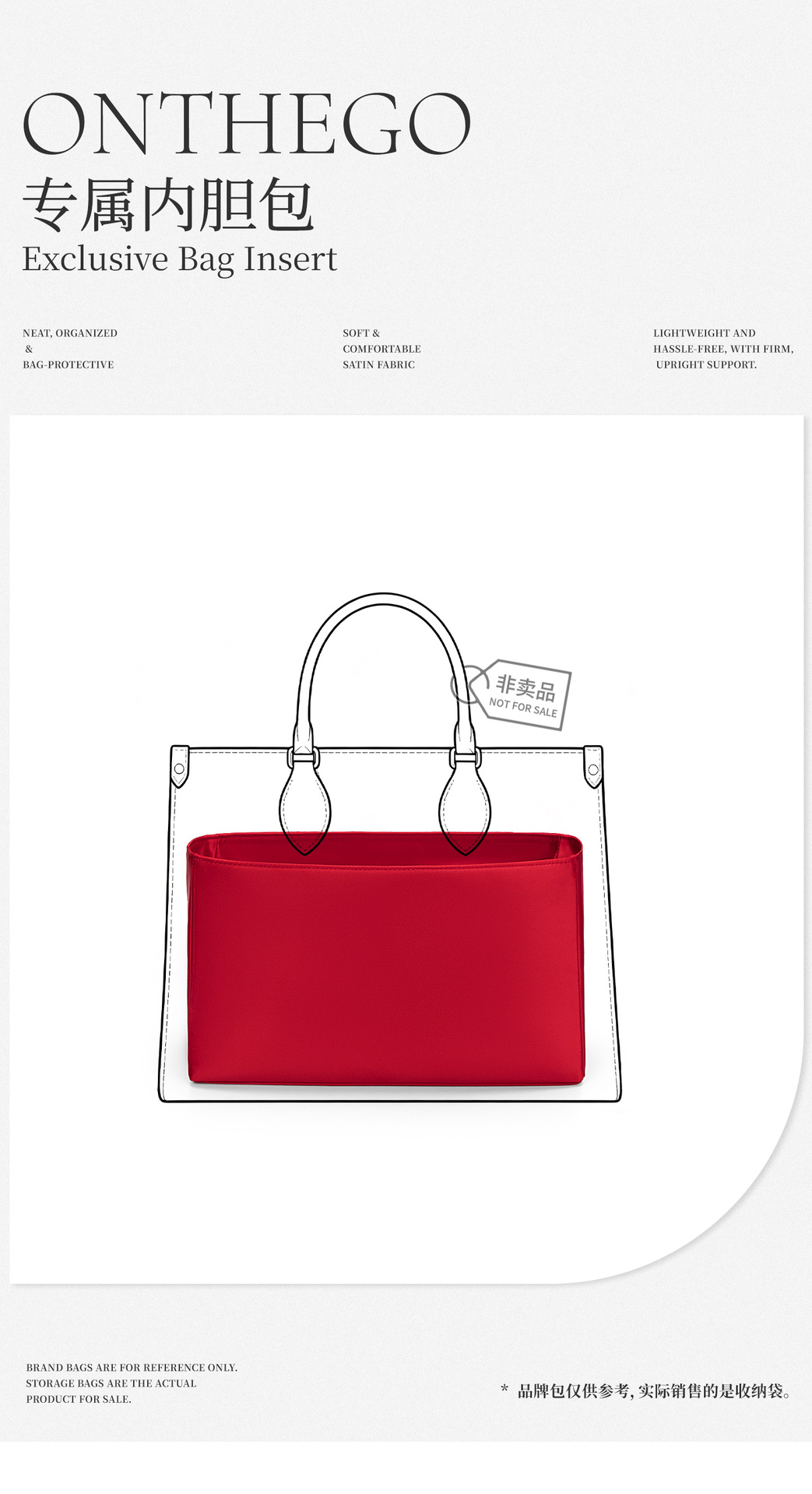 [실크 새틴 원단] ONTHEGO 이너백, 보호용 내부 수납 가방, 화장품 가방, LV 토트백 지지대에 적합합니다.스토어 가기