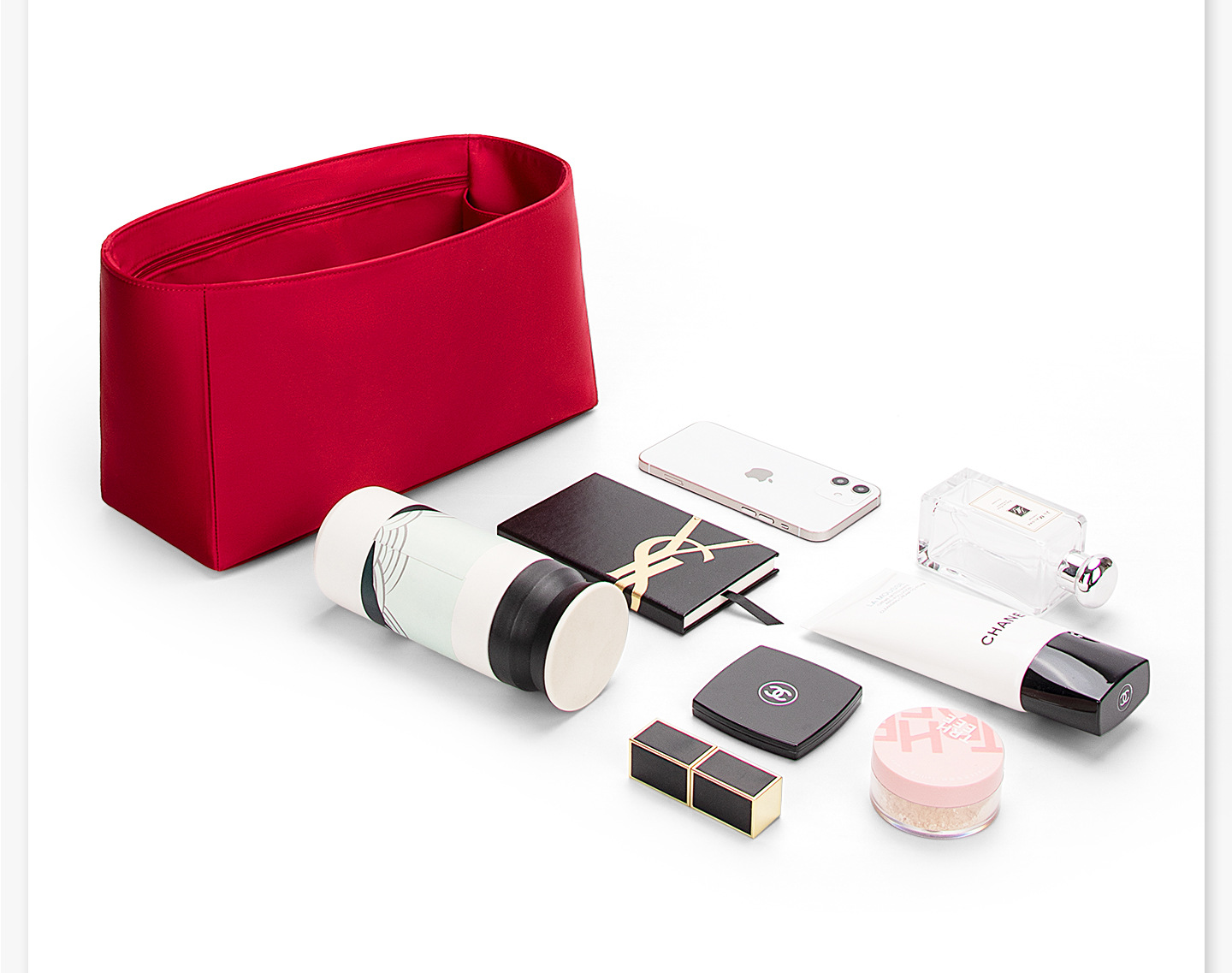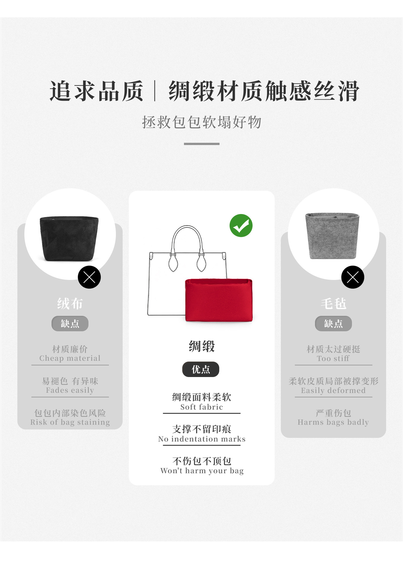[실크 새틴 원단] ONTHEGO 이너백, 보호용 내부 수납 가방, 화장품 가방, LV 토트백 지지대에 적합합니다.