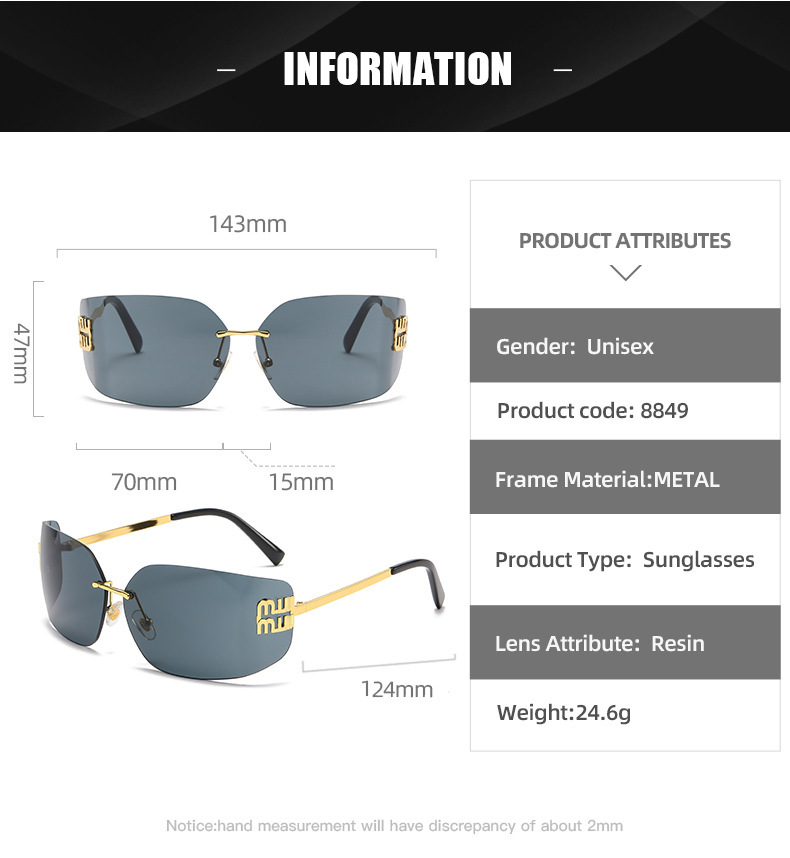 Miaojia 새로운 도착 금속 프레임리스 선글라스 한국식 여성 장 Yuanying 독특한 선글라스 모양 선글라스스토어 가기