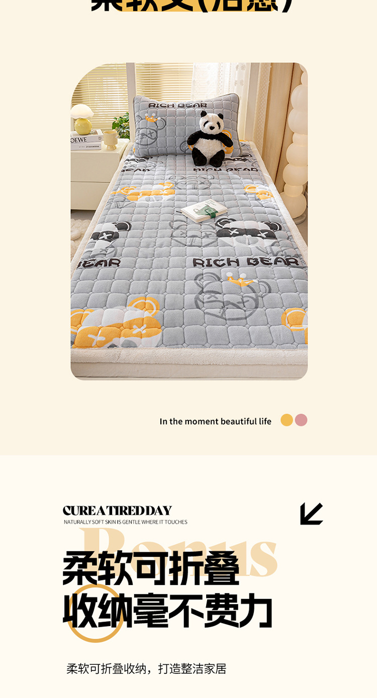 가을과 겨울 우유 벨벳 매트리스 쿠션 가정 만화 학생 기숙사 매트리스 얇은 매트 따뜻한 두꺼운 침대 매트스토어 가기