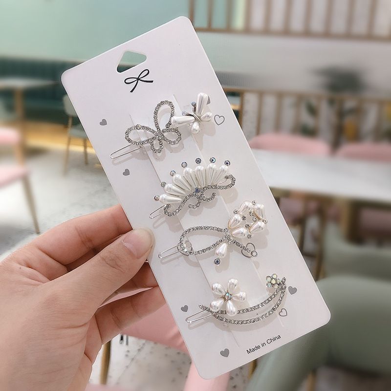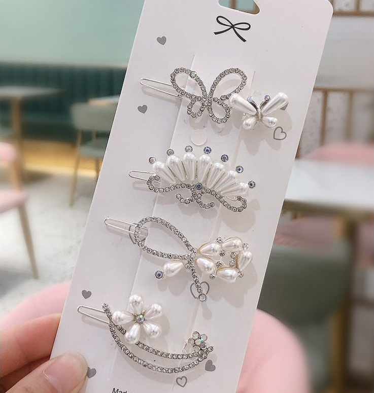 구름 달콤한 간단한 Ins 귀여운 개구리 버클 사이드 클립 인터넷 연예인 소녀 진주 하이 엔드 활 머리핀