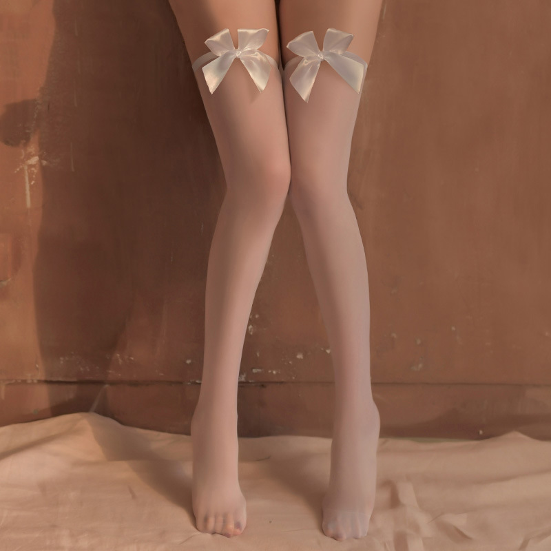 A8 순수한 매력 레이스 미끄럼 방지 롱스타킹 초박형 무릎 위 스타킹 리본 블랙 하이스타킹스토어 가기