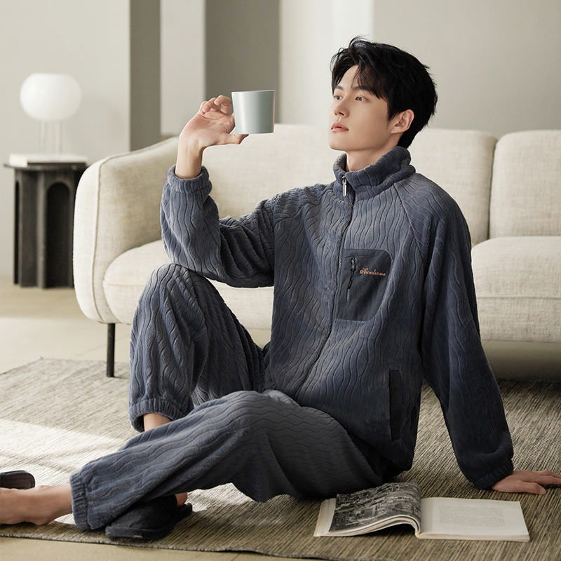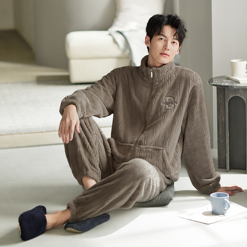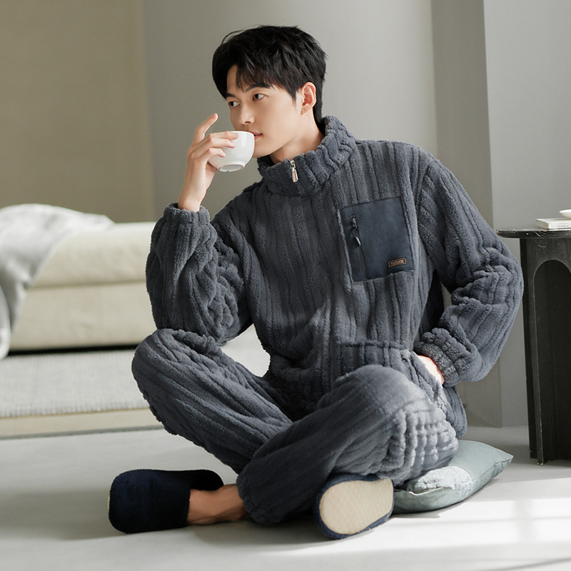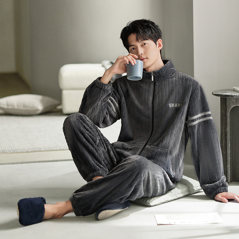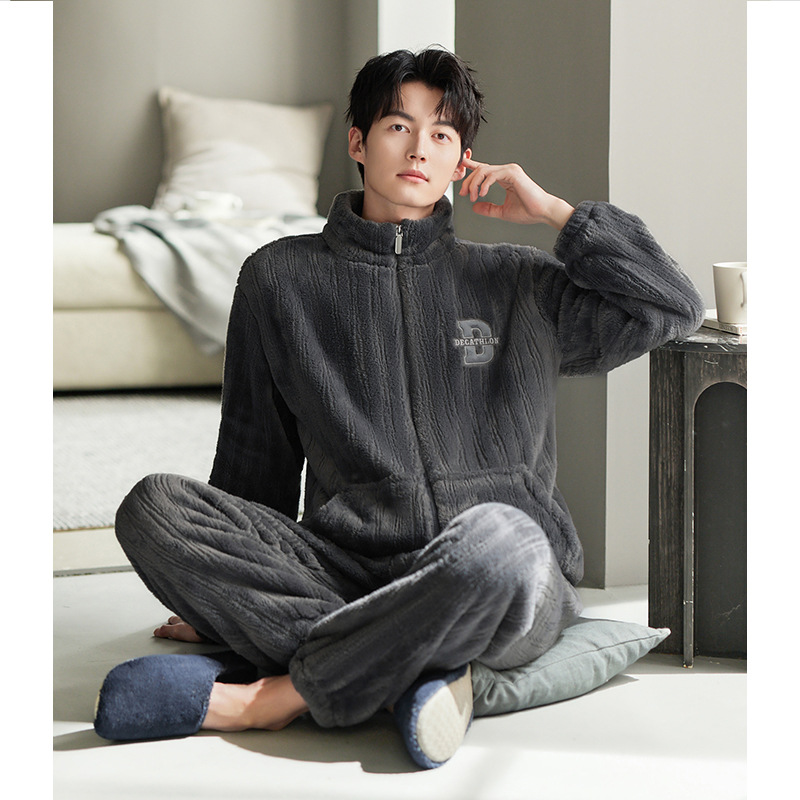 잠옷 남자의 겨울 산호 양털 두꺼운 기모 남자의 가을과 겨울 플란넬 플러스 사이즈 겨울 캐주얼 홈 옷스토어 가기